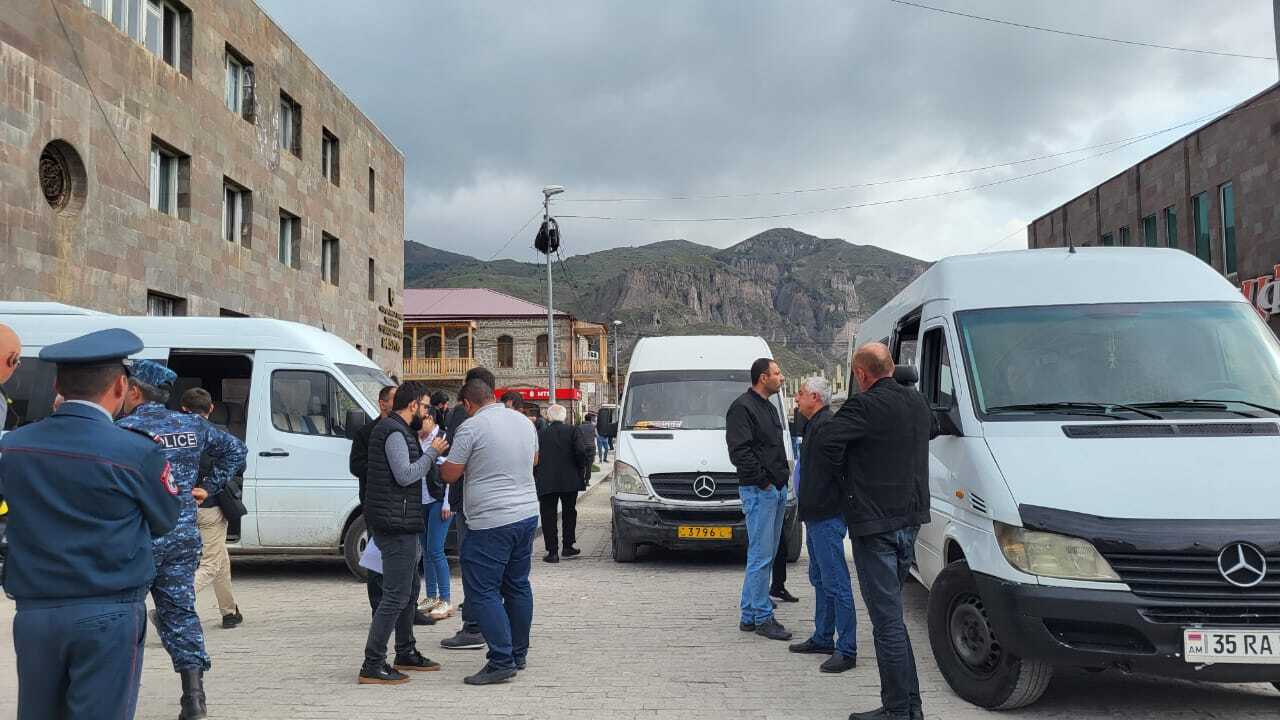 Вынужденных переселенцев вывозят на автобусах по Лачинскому коридору в сопровождении российских миротворцев. Тем гражданам, кто имеет возможность выехать на своих машинах, власти города начали предоставлять бесплатно бензин на пяти заправках Степанакерта.