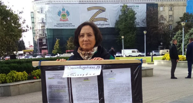 Как сообщал "Кавказский узел", 10 октября пенсионерка из Геленджика Людмила Гуслякова повторно объявила о проведении голодовки около здания краевой администрации в Краснодаре, так как ранее власти пообещали решить проблему с отсутствием жилья, но не выполнили это обещание. Чиновники запретили ей оставаться на ночь около здания краевой администрации. Сегодня она продолжила акцию протеста.