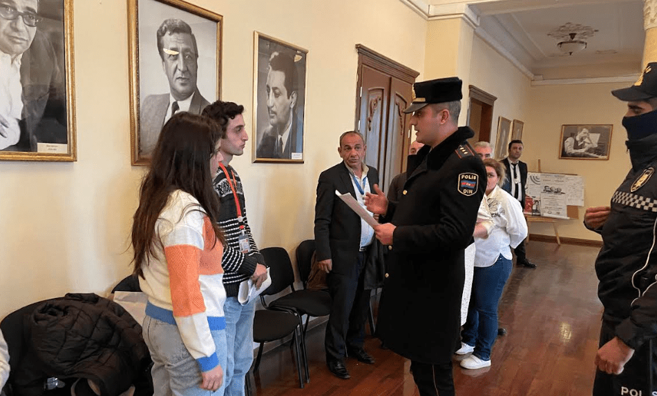 Председатель участковой избирательной комиссии Азер Бабаев сказал, что на молодых людей пожаловались другие наблюдатели, поскольку они, вставая со своих мест, перекрывали им обзор, и полиция была вызвана на основе составленного им акта.