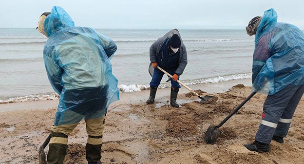 Оперштаб Краснодарского края сообщил сегодня, что новых выбросов мазута на берегу не найдено.