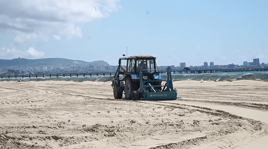 "Техника просеивания трехфазная: сначала идут машины ПУМА-2200, которые просеивают более крупные фракции, за ними — ПУМА-1600, песок просеивают до визуально чистого вида. После этого по участку проходят тракторы с планировочными граблями, которые разравнивают песок, а за ними — плуг, который переворачивает грунт на глубину от 30 до 70 сантиметров. Далее мы ждем до 24 часов, пока песок просохнет. После снова используются планировочные грабли, которые готовят поверхность для работы просеивающей техники", — рассказал о технологии работы директор ООО "Курорты Анапы" Николай Заливин.