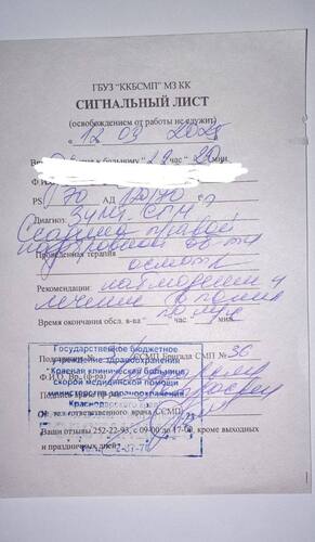 Публикация проиллюстрирована медицинским документом с печатью краевой больницы скорой помощи. Документ датирован 22.20 (мск) 12 сентября, имя пациента на опубликованной фотокопии заретушировано. В графе "диагноз" указано "ссадина правой надбровной области".