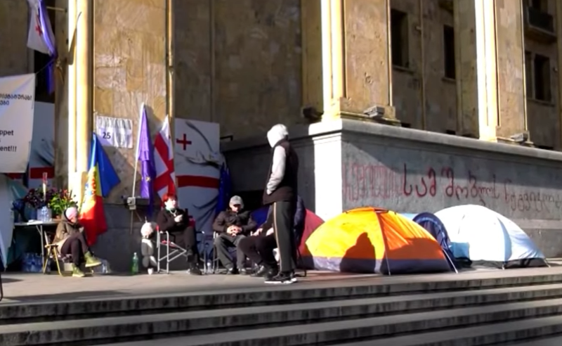 Перед зданием парламента голодают девять человек. На проспекте Руставели развернуто девять палаток, передает телекомпания.