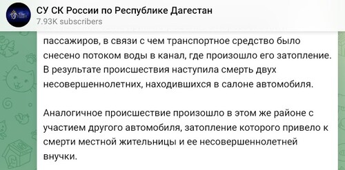 Напомним, 5 апреля в Дагестане произошло разрушение Геджухской плотины, поток воды смыл с трассы несколько автомобилей. Спасатели вытащили из воды семь человек, двое из которых умерли в больнице. Еще два человека пропали без вести. Позднее было найдено тело пятилетней девочки, спасатели продолжили поиски ее бабушки.