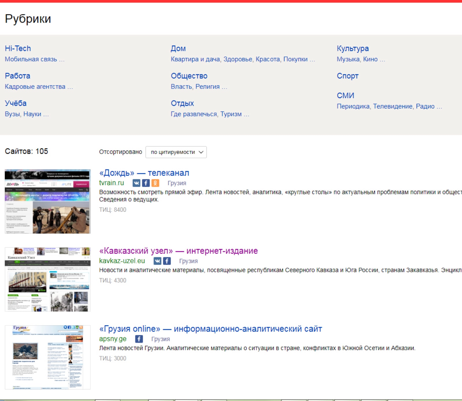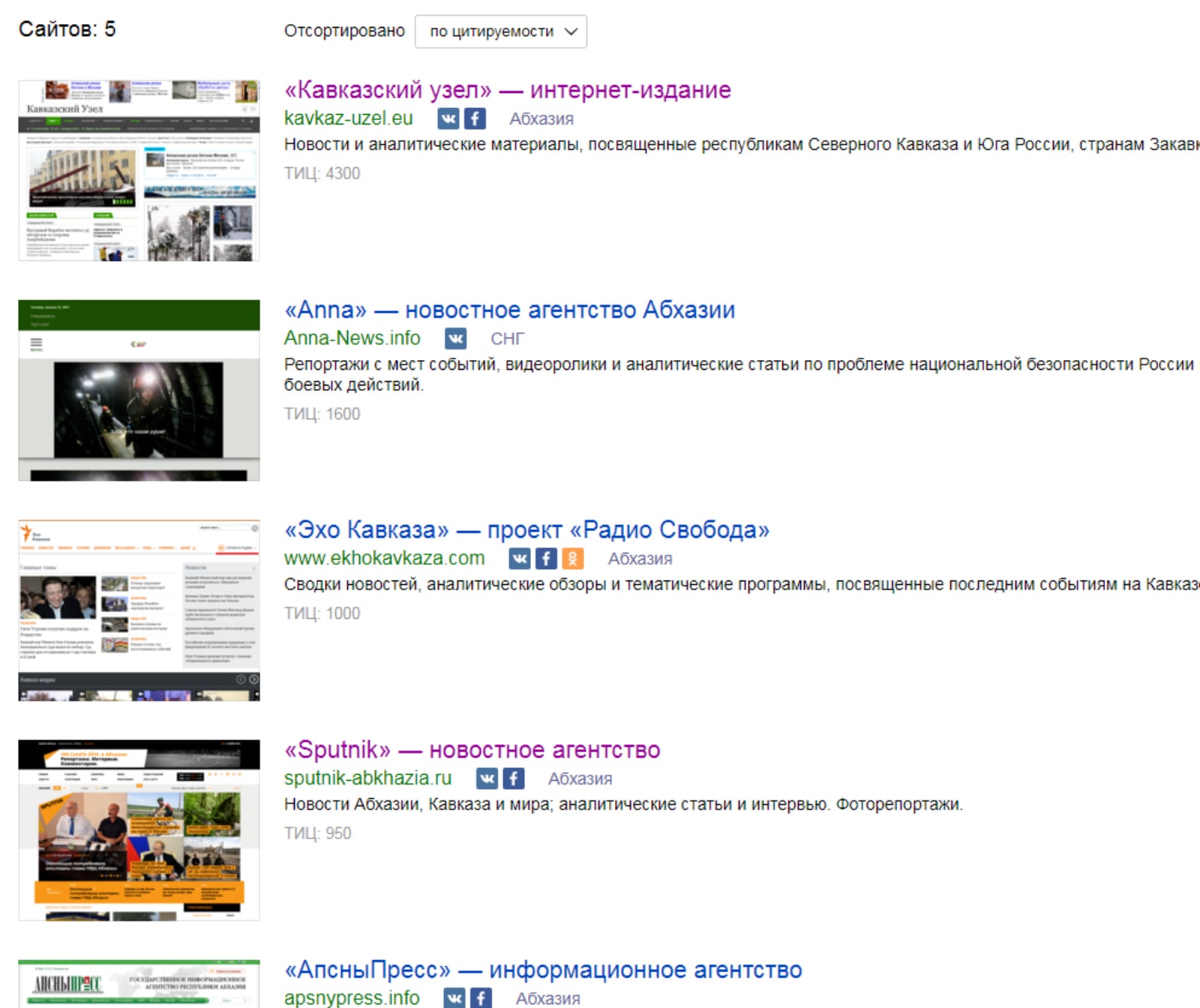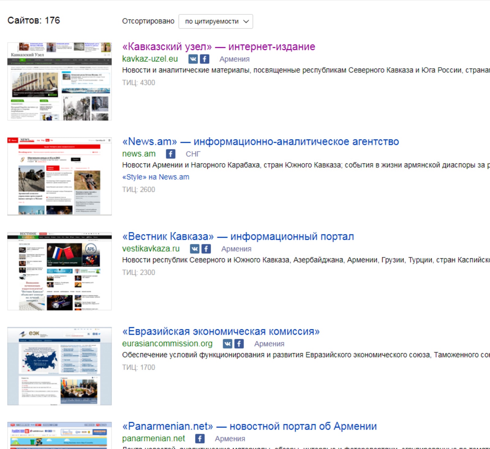 1-2 места по цитируемости на Южном Кавказе (более 75 тысяч цитат в русскоязычных СМИ).