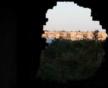 Окраина Цхинвала. Из-за этого угла в город входили грузинские танки.Главный санэпидем врач Южной Осетии Марина Кочиева у своей машины. Зарская дорога.Приднестровские рабочие фотографируются у башни...