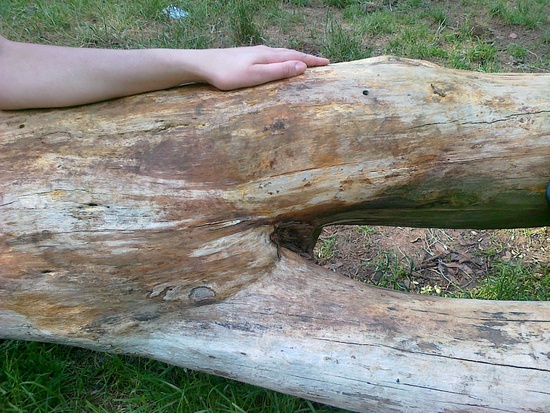 сначала я увидел лежащее на земле дерево, а потом попросил мою спутницу присесть и положить на него руку...