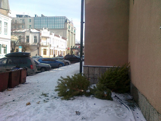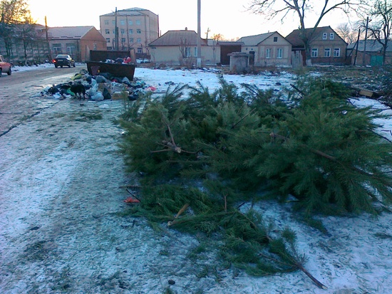 елки-палки, ну разве не обидно? ходишь по городу, и то, что вчера украшало наши дома валяется в мусоре, среди грязи, а в лучшем случае горит в кострах или плывет по Тереку. а еще несколько дней назад, "елочка, гори!", "посмотрите, вот наша красавица!"... а теперь красавицы гниют на глазах у их же украшавших детей, разве это правильно? это я еще щадаяще пофоткал, картины попадались и похуже... неприятно смотреть, считаю надо что-то делать с этим. когда-то давно был даже репортаж на местном тв о том, что хотят с делом их утилизировать. но это было давно и не правда. а может вообще отказаться от традиции? только искусственные, как вариант?
