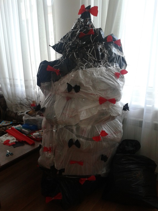 вот еще вариант как паковать елку, чтобы выбросить, почти как снова украсить. но это опционально, исключительно по фантазии владельца...
