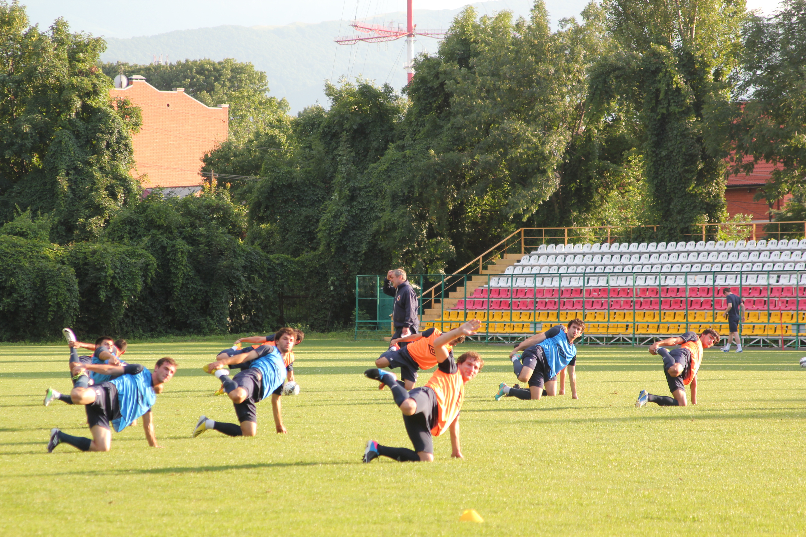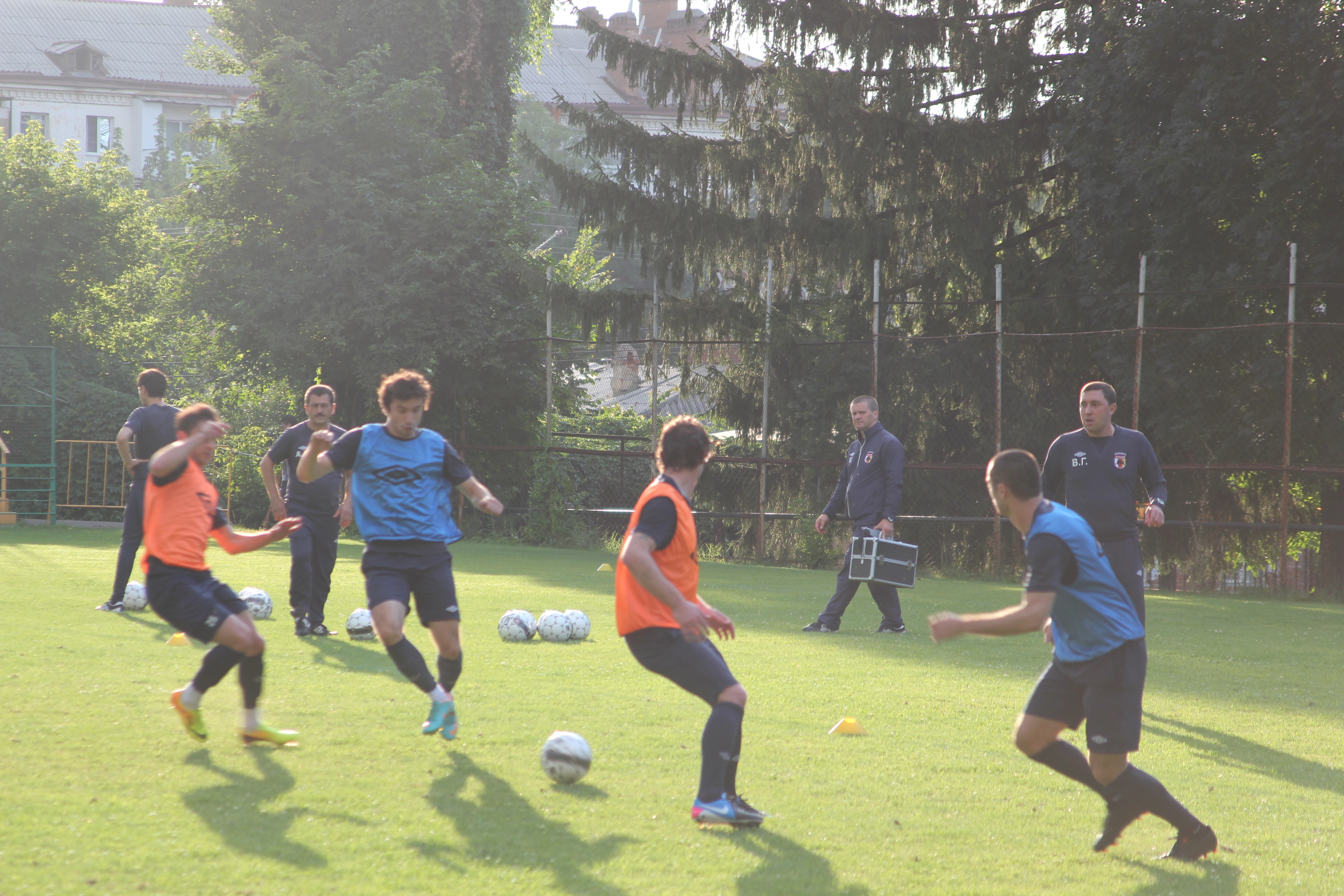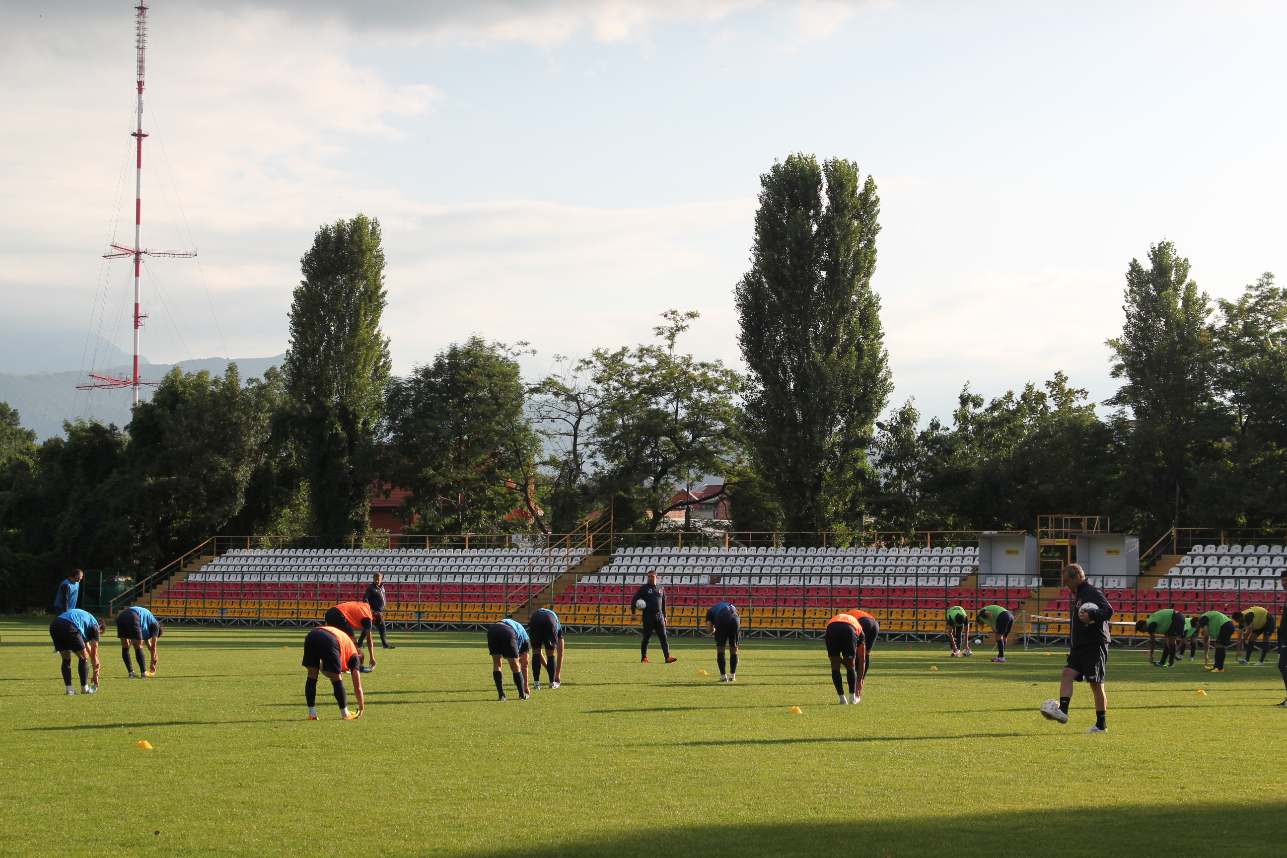 вчера был на тренировке "Алании", на стадионе "Спартак". сделал много бестолковых фоток, которые и выставляю. бестолковых, потому что футбол трудно снимать маломощной камерой, тут нужны специальные аксессуары, зум-объектив и все такое. так что я просто с кромки поля поснимал как получилось. обычная тренировка, растяжка, игра семь на семь и несколько зевак вокруг вроде меня. а послезавтра игра в Нальчике...