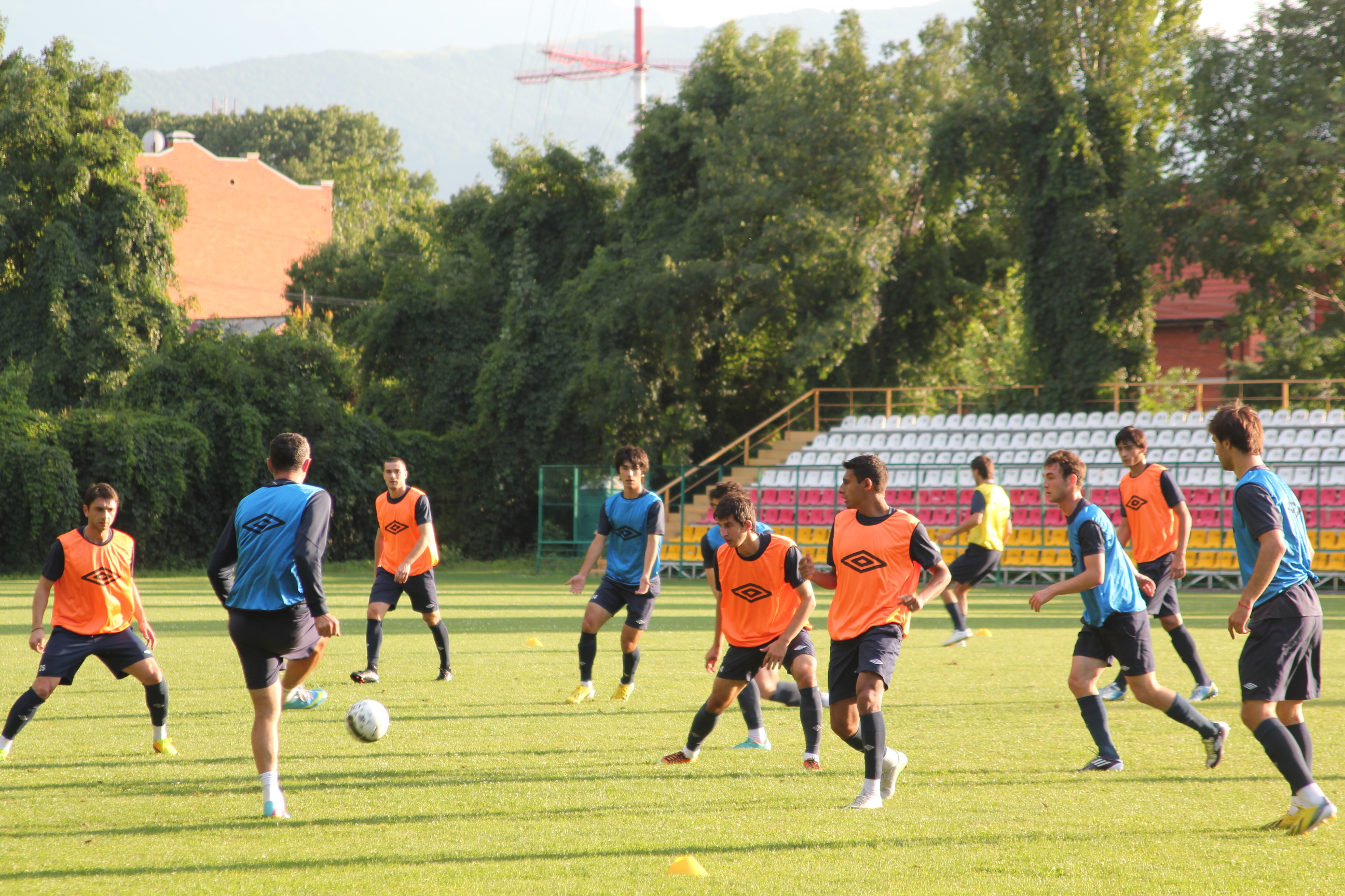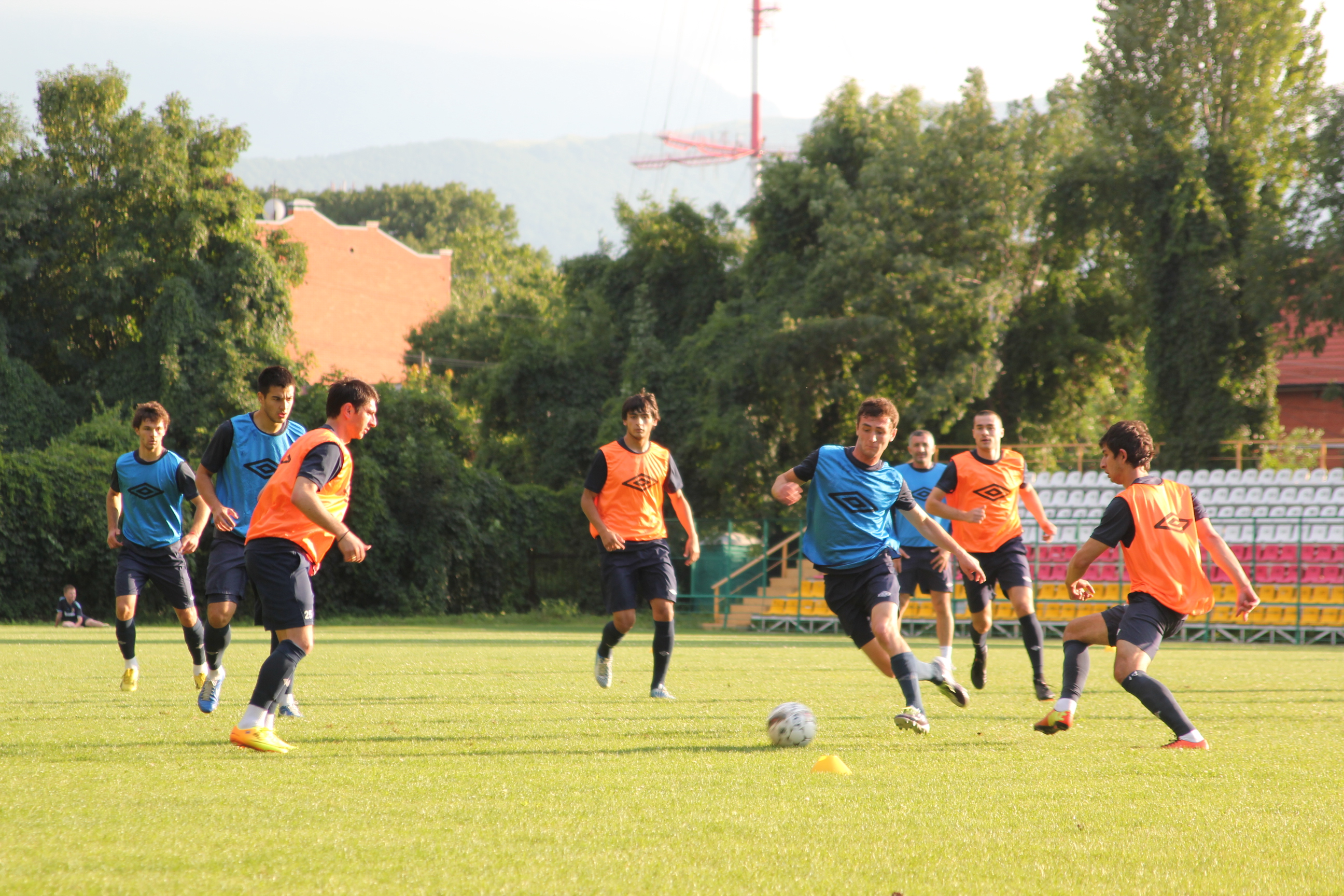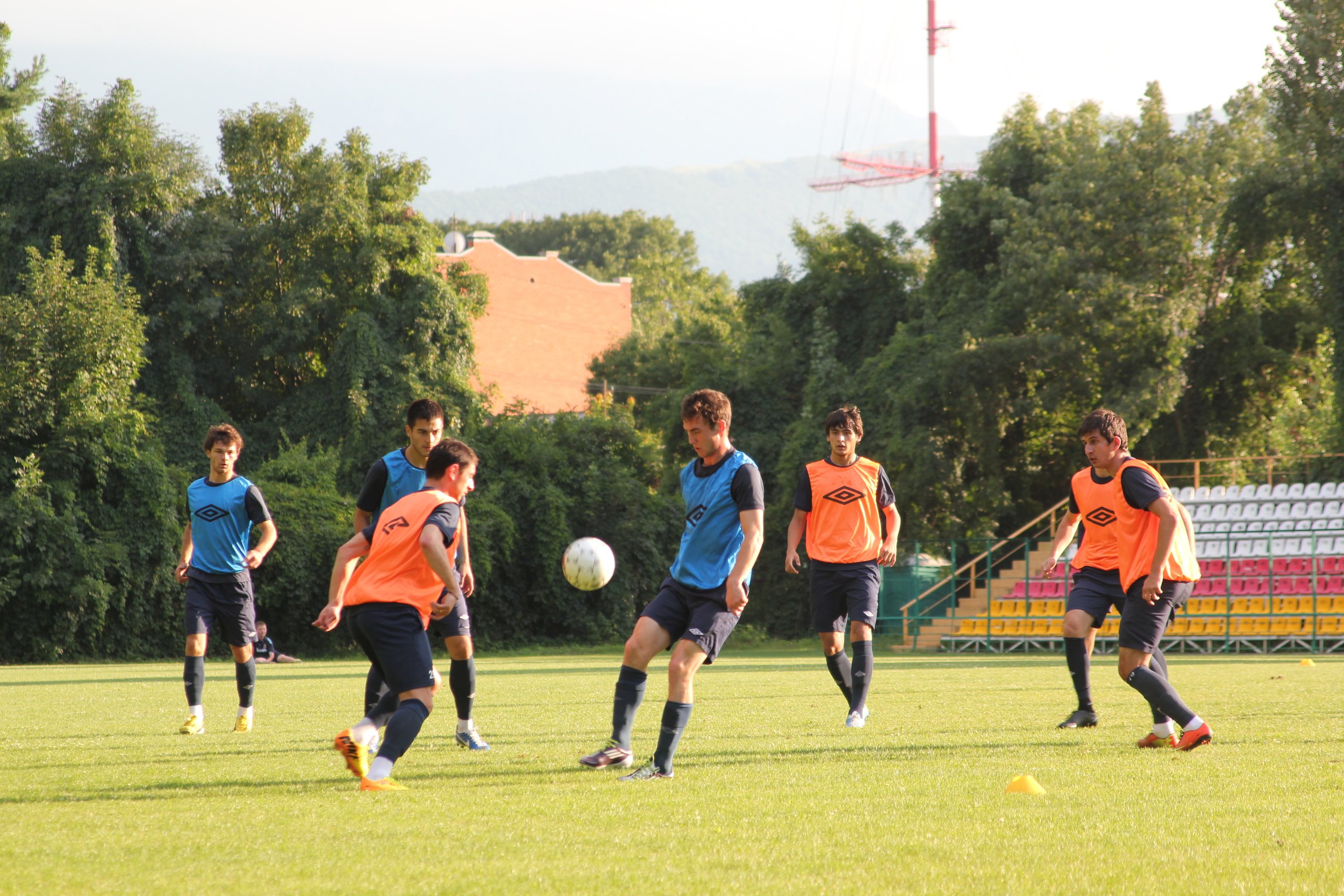 вчера был на тренировке "Алании", на стадионе "Спартак". сделал много бестолковых фоток, которые и выставляю. бестолковых, потому что футбол трудно снимать маломощной камерой, тут нужны специальные аксессуары, зум-объектив и все такое. так что я просто с кромки поля поснимал как получилось. обычная тренировка, растяжка, игра семь на семь и несколько зевак вокруг вроде меня. а послезавтра игра в Нальчике...