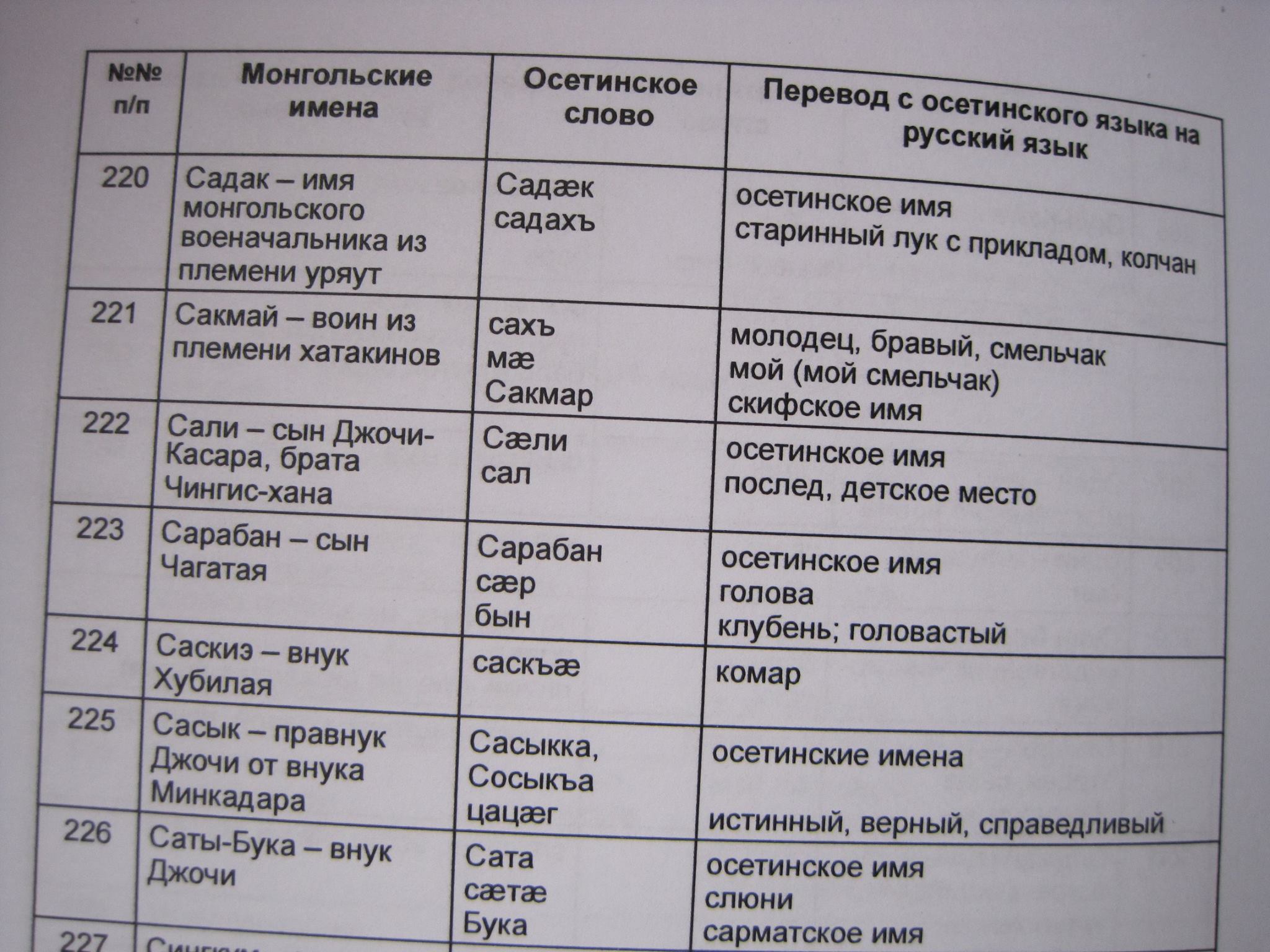 не буду спорить на историческом поле, но на логическом уже немало вопросов возникает. вообще не понятно что эти примеры ниже нам доказывают? как "внук Хубилая" превратился в осетинского комара? это его прозвище было? а прозвище "внука Джочи" было "слюни"? я конечно знал в Осетии людей и с еще более странными прозвищами, но никому из них и в голову не приходило их объяснить историческими параллелями с племенами кочевников.