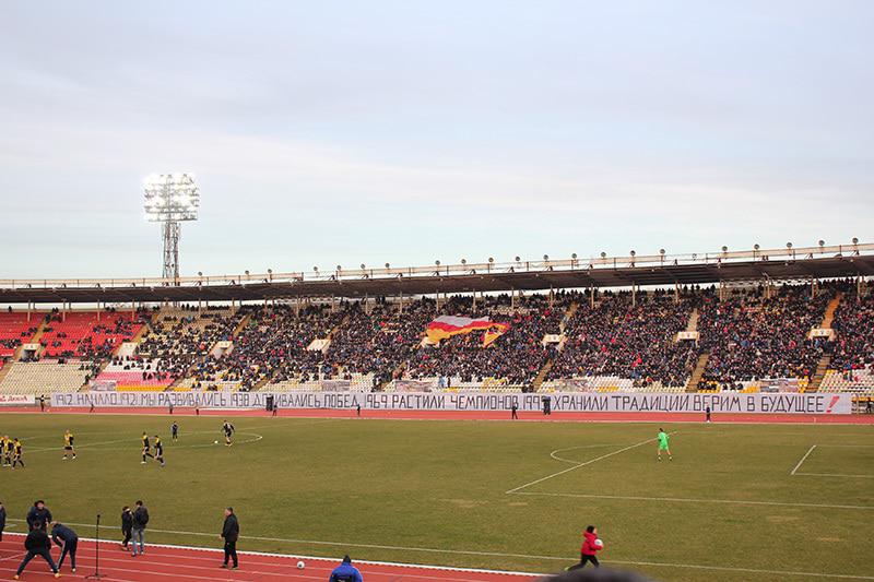 вчера сходил на "матч года" "Легенды Алании". сборная Осетии - команда чемпионов 95. трогательно, и немного грустно, ясно от чего. "Алания" в самом низу турнирной таблицы второго дивизиона и все что остается болельщикам это ностальгировать по прошлым победам. посмотрите сколько людей собралось, полстадиона почти. для ностальгического матча очень много.