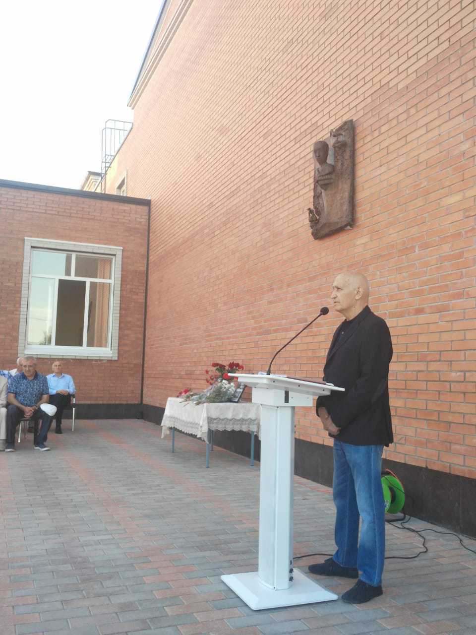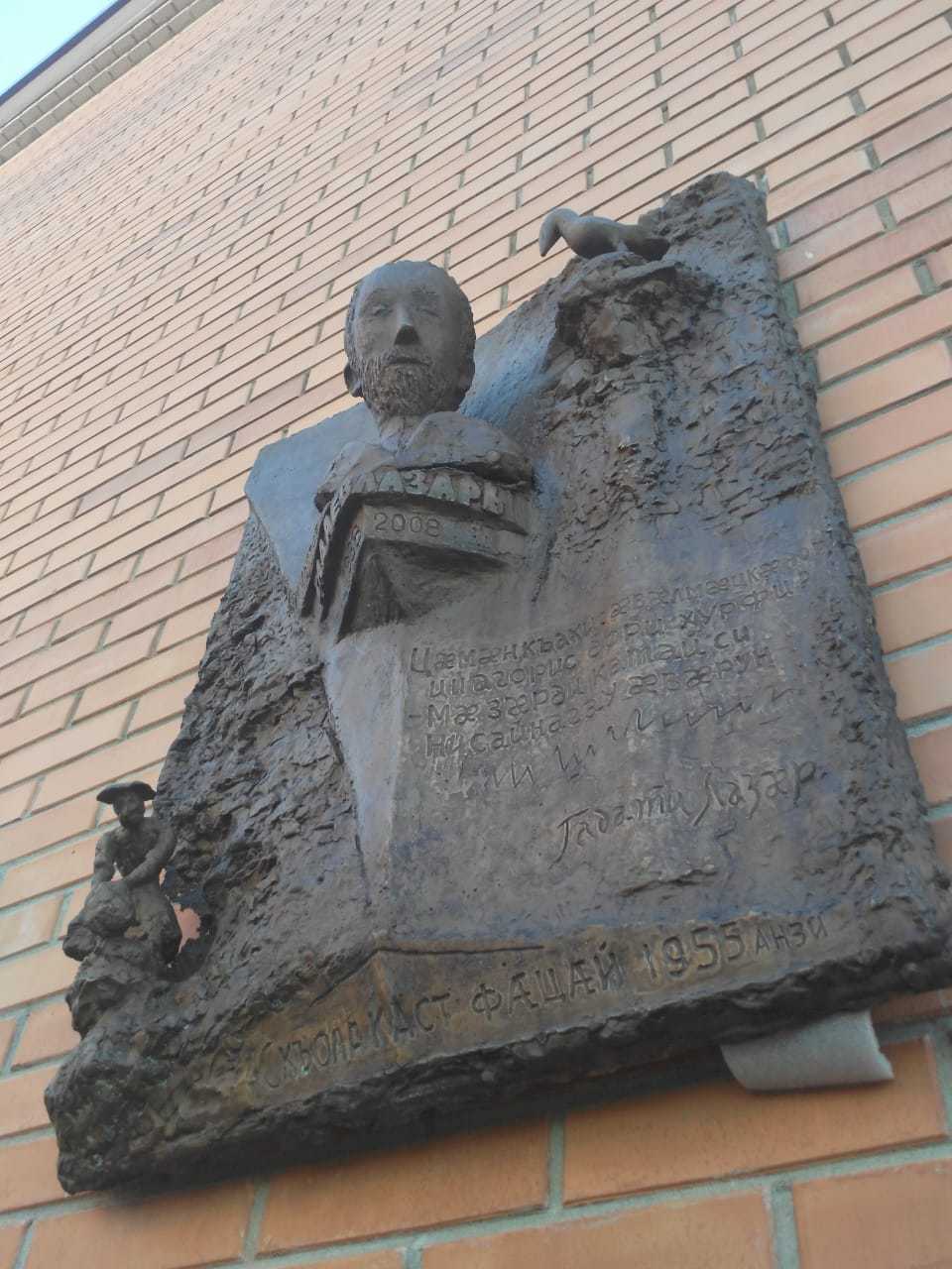 мемориальную доску открыли в его родном селе Сурх Дигоре, на стене родной школы скульптора. автор доски - еще один выходец из этого села, также признанный в мире скульптор, Владимир Соскиев. работы Соскиева обычно вызывают широкий резонанс в Осетии, потому что стиль Соскиева очень необычен, сложен для восприятия и часто вызывает у зрителя отторжение на интуитивном уровне. я и сам не раз присоединялся к противникам его памятника Коста Хетагурову на Проспекте Мира.