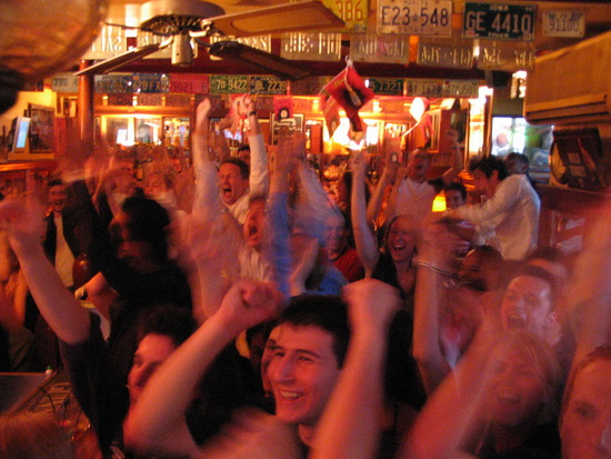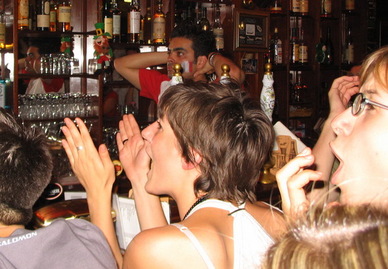 ну и раз уж пошла речь о ЧМ, вспомнил как четыре года назад в парижском баре смотрели матч Испания - Франция. кто не помнит, тогда на Фарнцию никто не ставил, но Зидан как вол тащил команду до самого финала (и правильно сделал, что ударил Матераци, но это другая тема). это была 1/8 финала, мы зашли в какой-то бар в центре, не помню в каком районе. впрочем, в тот день все бары были забиты людьми. конечно, смотреть футбол в баре в Европе это что-то особенное. а тем боле во Франции, когда играет Франция. а тем более, когда она выигрывает. все люди просто становятся одной большой компанией. помню, кто-то толкнул меня и я пролил свое пиво. не успел я и слово сказать, как этот тип исчез и вернулся с двумя полными кружками, мы еще о чем-то с ним поболтали... а после победы началось вообще нечто нереальное. бар был на какой-то небольшой площади, в окружении четырехэтажных зданий. так вот, после мачта площадь заполнилась людьми, шум стоял невероятный. и вдруг из окна дома раздался крик и какой-то тип выбросил в окно футбольный мяч. что тут началось... человек пятьдесят носилось по площади за одни мячом просто выбивая его подальше. я тоже вначале побегал, но за этими арабами не угонишься, пару раз ударил мячик и вернулся к дамам, которые меня и сопровождали. атмосфера была прото дико веселой, нереальной, я ничего подобного в жизни не видел. потом в один момент я отошел к магазину за порцией пива, а когда вернулся возле дам уже стояли несколько здоровых арабов. "бонсуар", говорю. они тоже поздоровались вроде. а потом что-то мне тереть начали, я ни черта не понял. ну и чтобы не оплошать тоже что-то им начал рассказывать. они видимо тоже ничего не поняли и свалили. ну мы там еще постояли немного и ушли. на следующий день по новостям передали, что футбол стал причиной гибели двух человек. один прибил жену, за то, что не давала смотреть телевизор, а другой залез на крышу вагона метро и так и поехал.