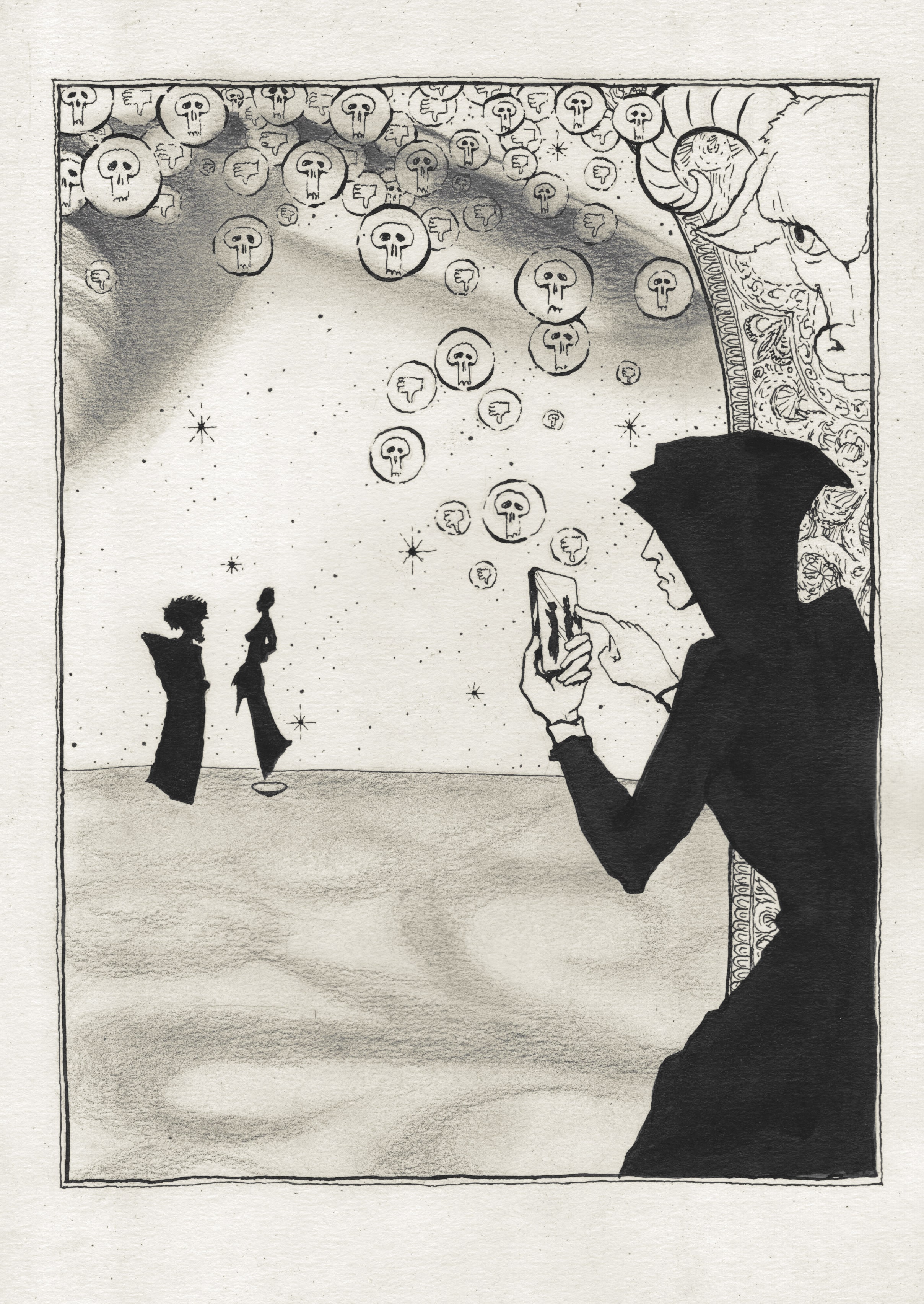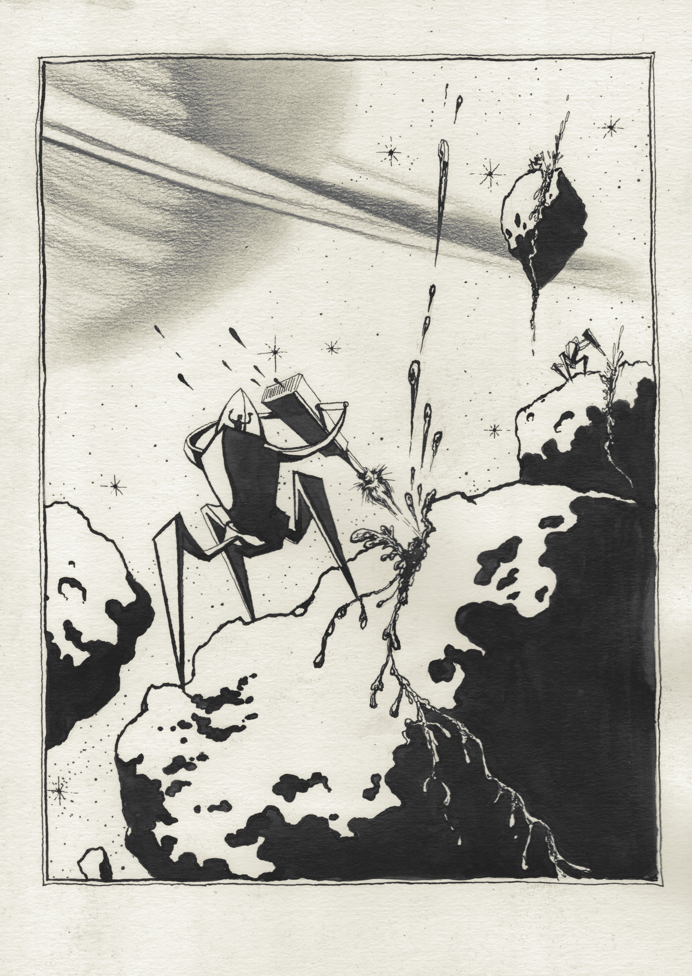 в продолжение темы со скандалом вокруг рисунка Ростана Тавасиева. пообщался с художником, и с его позволения выкладываю здесь его комментарий к ситуации, а также полную серию "Башни в кольцах Сатурна", откуда и взят тот самый рисунок.