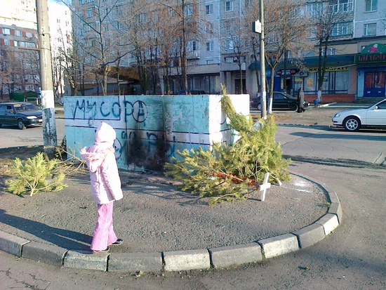 это они, те самые новогодние "крсавицы". они сделали свое дело, повеселили людей, теперь место "красавицам" на свалке.
