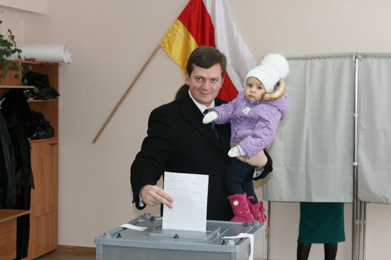 голосует Арсен Гаглоев, руководитель администрации президента ЮО.
