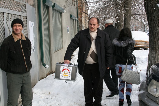 12:15 - в Цхинвале идет снег. не то чтобы снегопад, но падает активно. людей на улицах довольно много, кто-то чистит снег у ворот, кто-то играет в снежки. можно сказать, что в городе довольно оживленно. добрались до пресс-центра. здесь говорят, что к 10 утра проголосовало 9%.