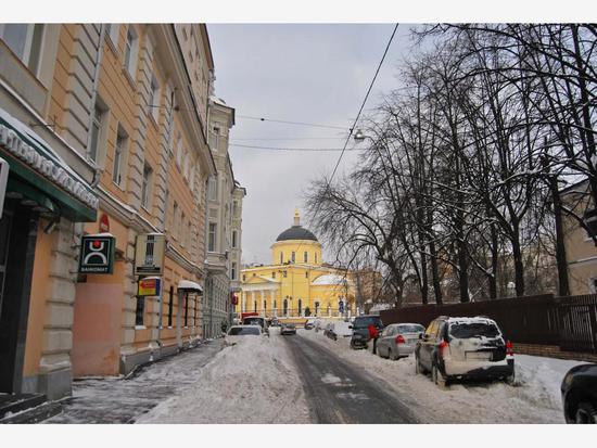Вид из Мерзляковского переулка на Храм Вознесения Господня ("Большое Вознесение") в Сторожах у Никитских ворот. фото с сайта http://fototerra.ru/Russia/Moskva/Stvo99-7401.html