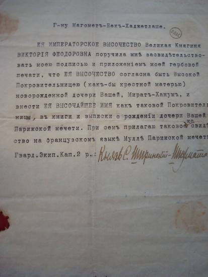 Кстати, несмотря на то, что дети были мусульманами, Мухаммед-Бек Хаджетлаше обратился к Великой княгине Виктории Федоровне, которая дала согласие быть «Высокой покровительницей» ( как бы крестной матерью). Вообще у самого Мухаммед-Бека Хаджетлаше были очень близкие отношения с царской семьей, в том числе и самим императором и его братьями (великими князьями).