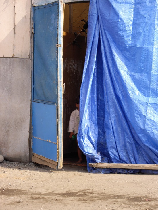 Мы направились   к  помещению, откуда доносились голоса детей. На наш стук  в  маленькое окошко, выглянула женщина. Мы попросили разрешения посетить их. Она приветливо пригласила нас. Прошли  в комнату, если  это можно было назвать комнатой. В маленькое помещение вместились две кровати, несколько низких табуреток, стол, маленькая  электрическая плитка. На вбитых в стену гвоздях  висели  детские вещи. На кровати - четверо ребятишек, трое из них школьного возраста. Понимаю, что пригласившая нас  женщина - мать этих детей. Интересуюсь, ходят ли дети в школу?