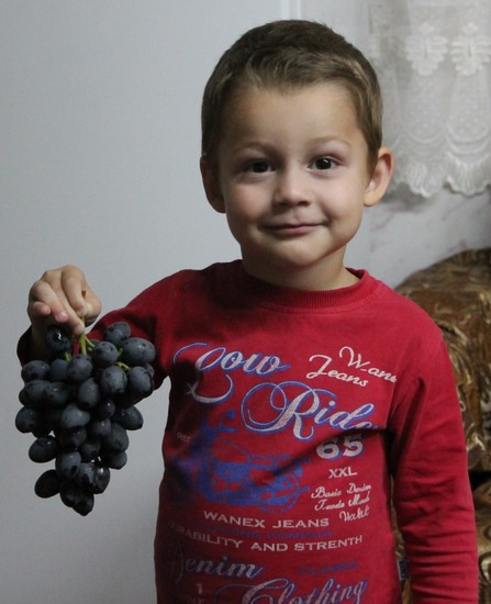 Больше 10 лет назад, где-то в году 2001, мой отец привез от родственника несколько побегов виноградной лозы, привезенного тому из Грузии черного винограда. Виноград прижился и разросся. Теперь, отец ежегодно снимает огромное количество урожая винограда, часть которого съедает детвора, а часть раздается родственникам, соседям и знакомым. Последние лет 8, отец уже сам раздает всем побеги виноградной лозы. Я не знаю что это за сорт, но виноград очень сладкий. Мои дети очень любят ходить к дедушке и бабушке, они испытывают неописуемый восторг, когда дедушка срывает для них те грозди, которые они выберут сами.