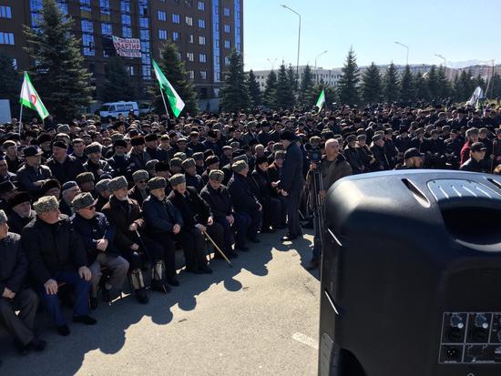 На площади в Магасе собралось уже около 10 тысяч человек. Народ продолжается собираться. Люди обсуждают последние события и выражают крайнее недовольство действиями региональной власти. Митинг начался. Организаторы просят собравшихся соблюдать установленный порядок.
