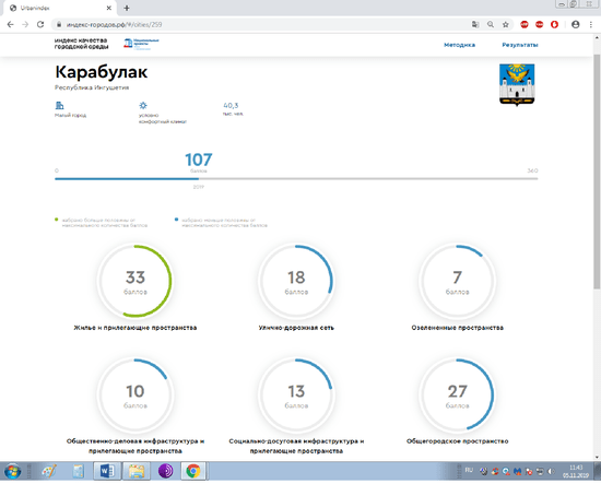 Самым высоким оказался результат ингушской столицы, Магаса – 151. Назрань получила 121 балл, Малгобек – 137, Сунжа – 118, а мой родной Карабулак оказался в республиканских аутсайдерах с крайне низким показателем – 107 баллов. Получается ни один из ингушских городов не обладает благоприятной городской средой, даже больше, властям надо еще очень сильно постараться, чтобы дотянуть хотя бы до среднероссийских показателей.