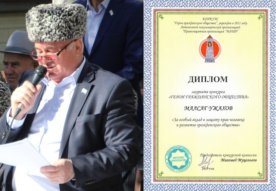Сегодня я расскажу о Малсаге Ужахове, он стал лауреатом Конкурса в номинации «За особый вклад в защиту прав человека и развитие гражданского общества».