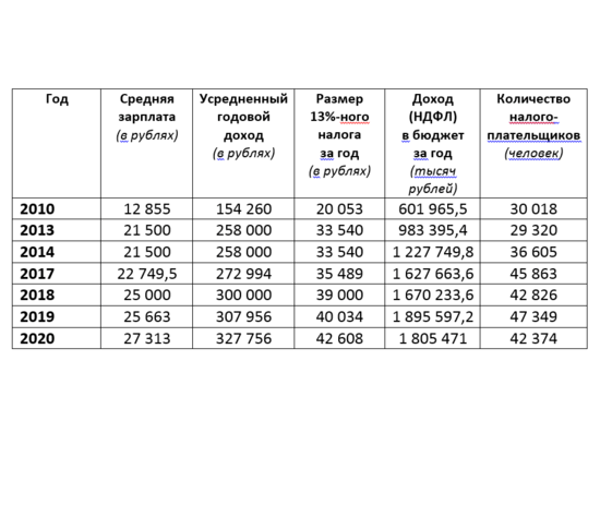 Отмечу сразу, что цифры за 2020 год были взяты из утвержденного на этот год бюджета (т.е. фактически прогнозируемые), а средняя зарплата из опубликованных на сегодняшний день данных. И кстати данные по заработной плате в 2013 и 2014 годах, почти не изменились и указанные мною при расчете, немного сыграют исключительно в пользу чиновников.