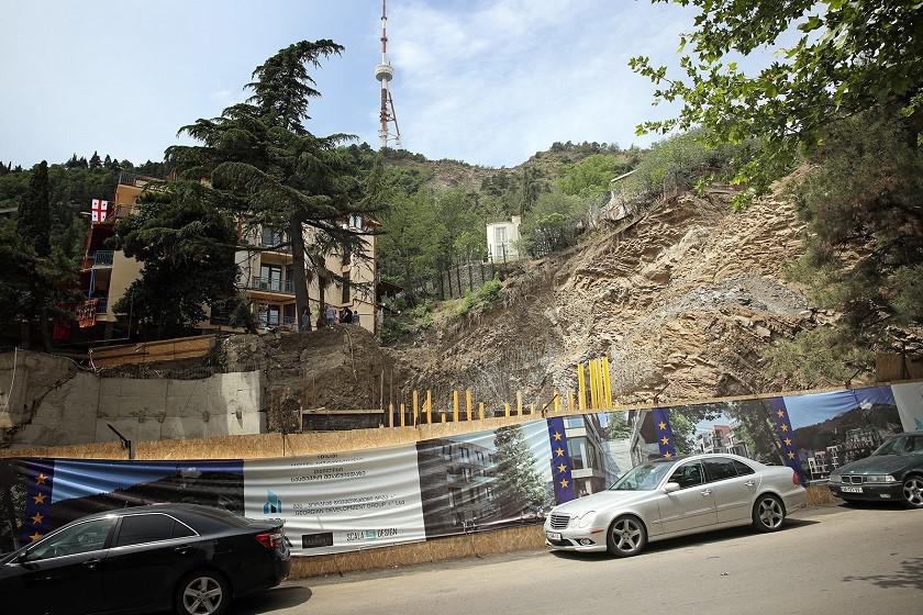 Стройка, о которой идет речь, началась в конце 2017 года на пересечении улиц Чонкадзе и Кипиани. 31 мая там обрушилась огромная часть скалы. Чудом при происшествии никто не пострадал.