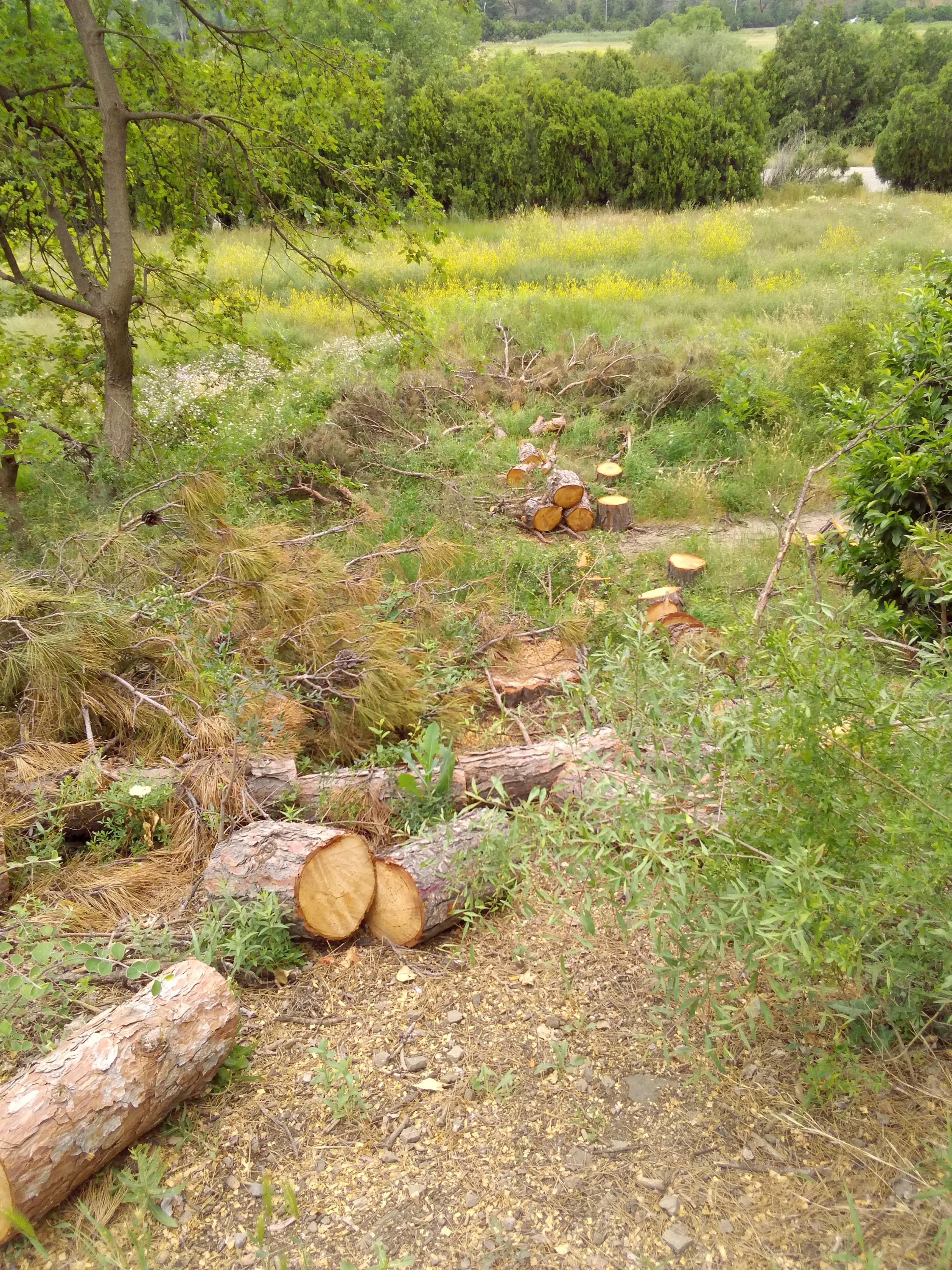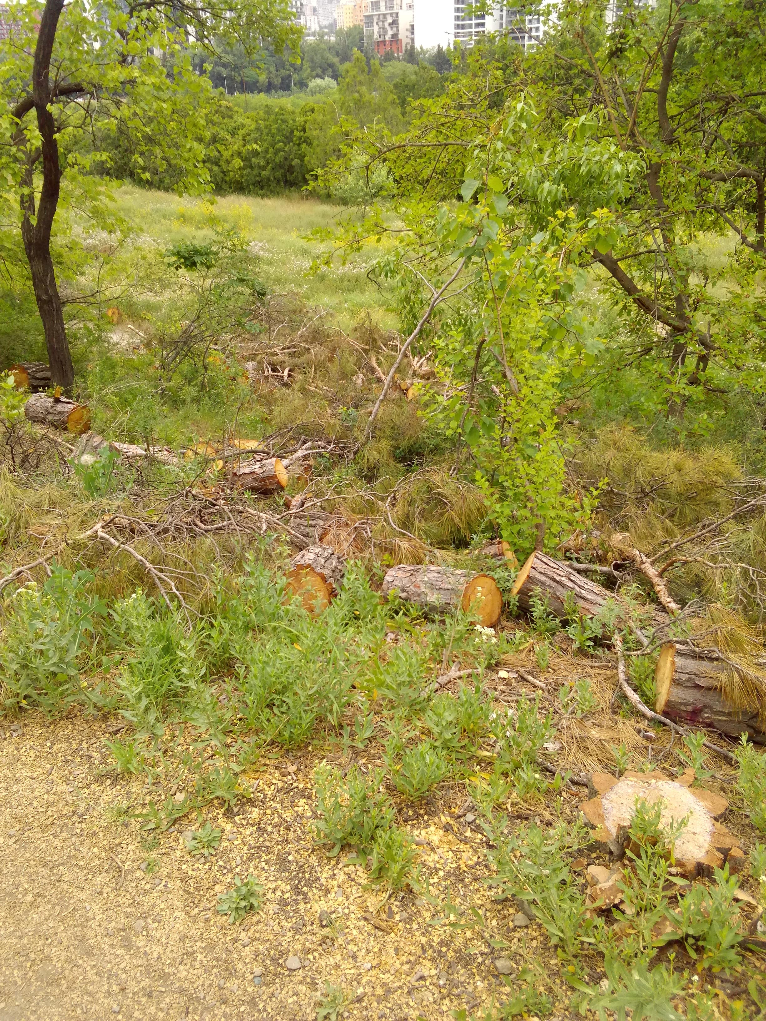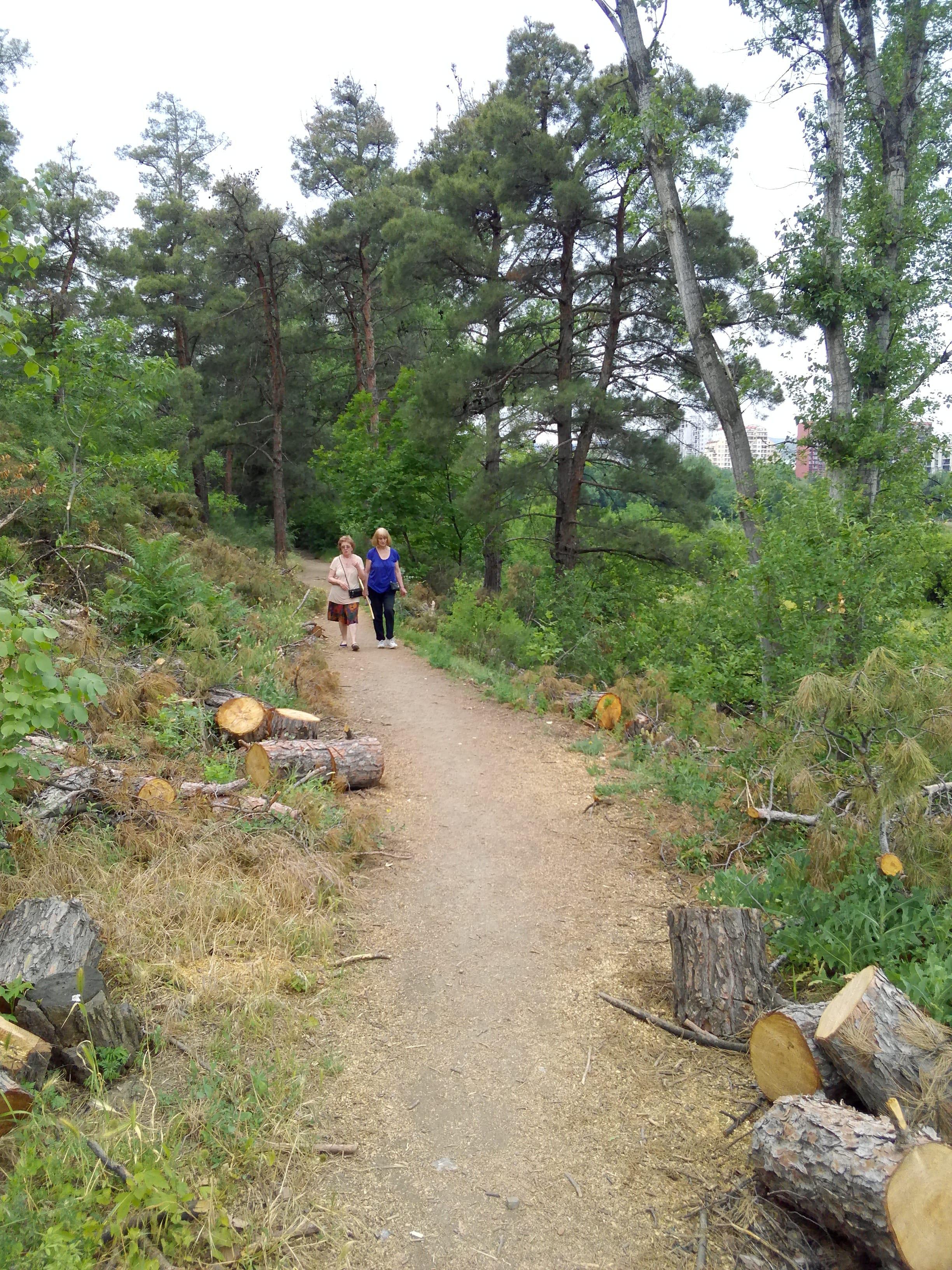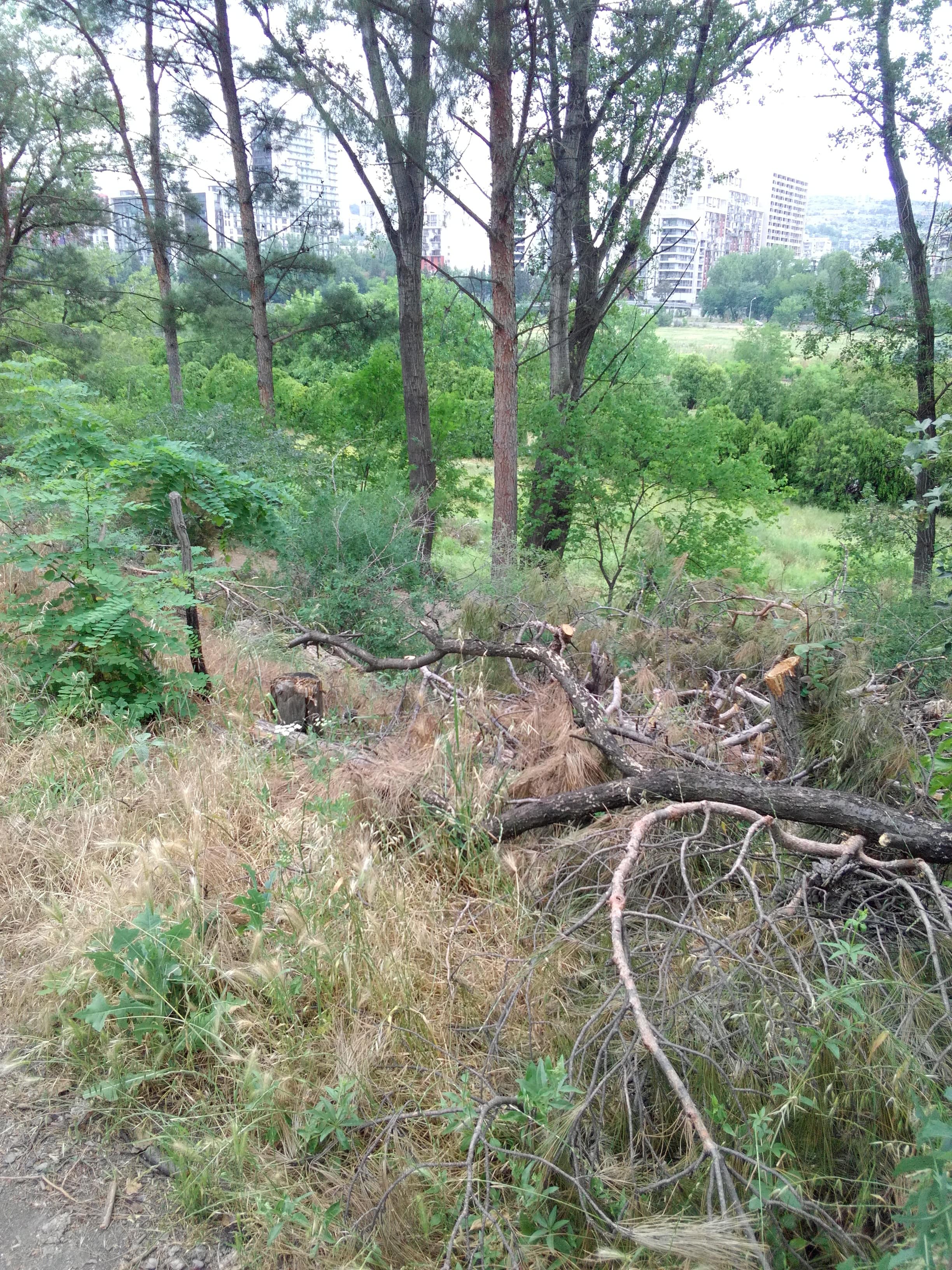 Где-то месяц назад, был на территории бывшего ипподрома в районе Сабуртало. Этот зеленый островок -  имхо,    "легкие" столицы. Так вот -  тогда, там  пилили старые, сухие деревья. Сегодня, просто, ради интереса, вновь зашел на "ипподром", и, прошелся по роще, где так любят гулять сабурталинцы. Вот что я увидел!