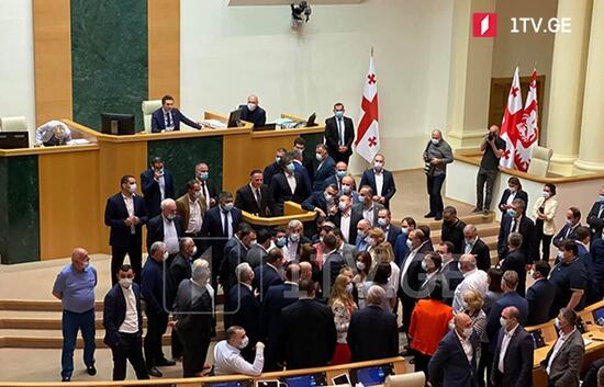 Спикер парламента Каха Кучава объявил заседание закрытым, поскольку, по его словам, проведение заседания и постановка вопросов не входили в цели политических групп.