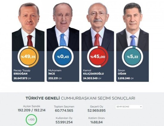 Напомню, Синан Оган занял третье место в первом туре президентских выборов в Турции.