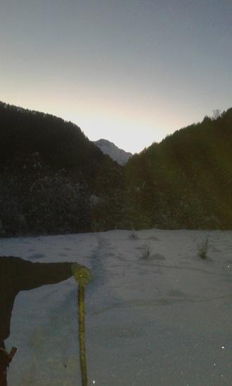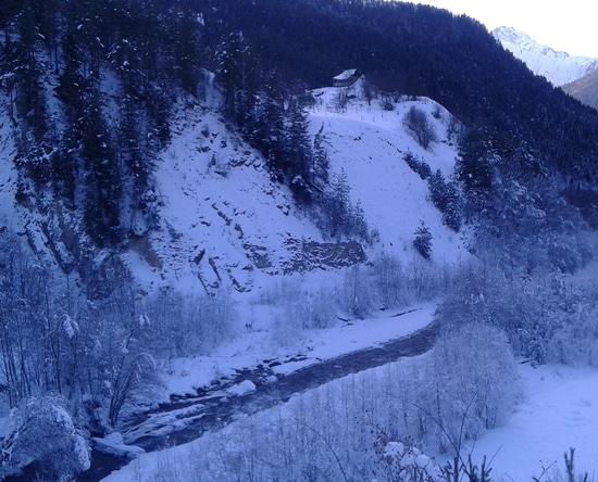 В общем, общий вид в верховьях  пока не зимний. Горное солнце изо всех сил борется и отвоёвывает территории у снежной Зимы.