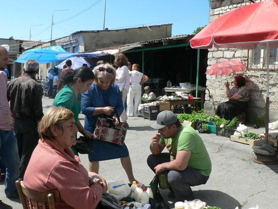Сыр, как наш брендовый товар, достаточно широко представлен на рынке. Его дегустация - особенно важный элемент рыночной  торговли. Приятно наблюдать и другие прилавки с товаром чисто местного производства - чурхелы, джонджоли в банках, туаг-ткемал, вино.