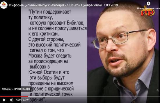 Так вот о выборах, Владимир Владимирович сказал, что как и договаривались, на выборы будут направлены наблюдатели, и что, он надеется что выборы пройдут в соответствии с законом и на демократической основой. Для чего после этих слов  российского лидера, наши телевизионщики врезали цитату политолога Николая Силаева, которая, мягко говоря, противоречит и словам Путина, и основам демократии в целом. Силаев  почему-то  сделал из встречи двух лидеров вывод, что Путин не склонен прислушиваться к критикам Бибилова. Хотя, абзацем ниже, приводятся его же, Силаева, цитата, что Москва будет следить  за тем, что будет происходить на  выборах. Но, как так, следить и не обращать внимание, не слышать,  критики в адрес, партии Власти, партии Бибилова - Единная Осетия? Как так смогут наблюдать представители РФ на выборах в РЮО.  Ведь на выборах всегда  много критики, даже слишком много. Есть два варианта выхода из ситуации  – сделать так, чтобы критики на выборах не было  или сделать вид, что наблюдатели ее не слышат.