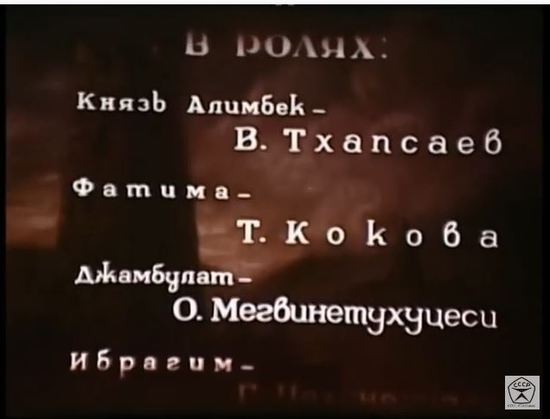 Но вообще то фильм снят на Грузия-фильме, и единственный осетин, который исполняет более менее главные роли , это Владимир Тхапсаев, — князь Алимбек. Сама Фатима, актриса из Нальчика - Тамара Кокова. Что, в принципе правильно - потому что в поэме, дело происходит в Кабарде. Да и написана сама поэма на русском. В общем, кроме автора – всё, не совсем, как говорится, осетинское.