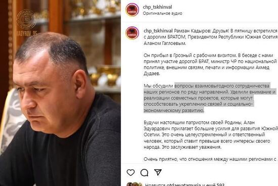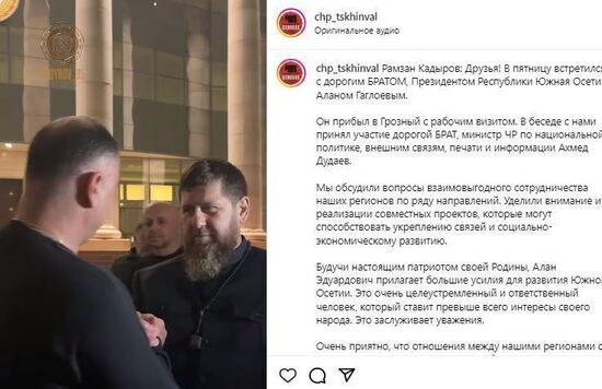 Ну вот, например, заметка о том, что Президент Республики Южная Осетия Алан Гаглоев прибыл в Грозный с рабочим визитом. Он называется автором заметки БРАТОМ Главы Чеченской Республики Кадырова Рамзана. И параллельно «дорогим БРАТом» "министра ЧР по национальной политике, внешним связям, печати и информации Ахмед Дудаева который тоже принял участие во встрече". (шрифт сохранен как был опубликован)