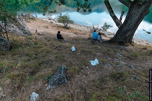 . Не долго думая, принесли из машины пакеты для мусора и пошли гулять по берегу озера. К слову о том, что мусор тут стал появляться после того, как стали пускать на территорию национального парка, повторюсь — это не так. Из озера нам удалось выловить кучу старых стеклянных бутылок. Многие из них были разбиты.