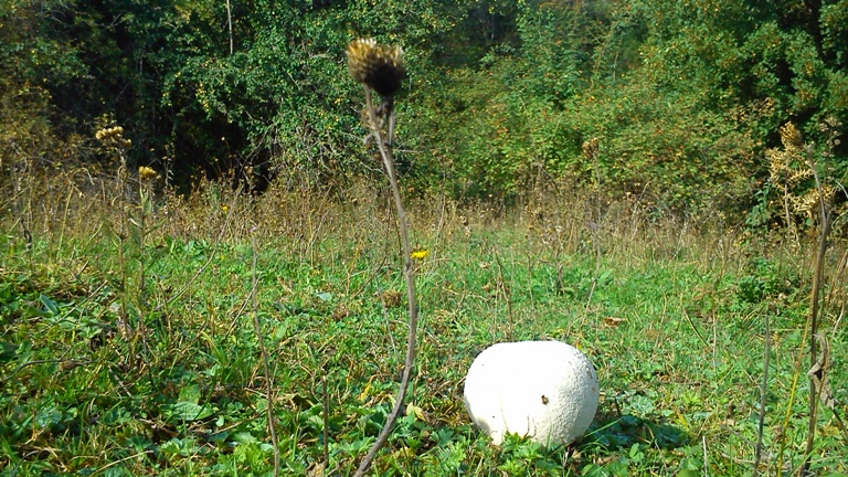 Это не инопланетянин - гигантский гриб в виде белого пупырчатого шара. Я его потрогал - влажный и липкий