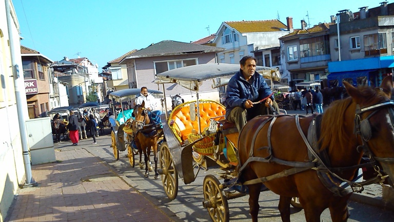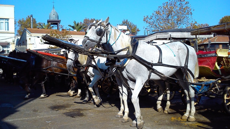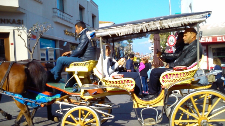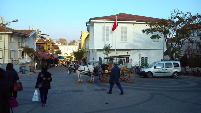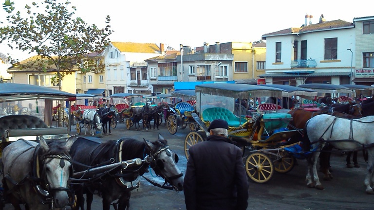 В ненавистной некоторых моим друзьям Турции, оказывается, под мегашум о защите экологии сами эту проблему решили, на острове Боюкада (большой остров - тюр.). Острова Боюкада и Кичикада (маленький остров) находятся в Мраморном море, ввиду Стамбула. Поездка туда на вапуре (катамаран - пассажирский трамвай) от Стамбула стоит 6 лир, время красивого путешествия с видом на обгоняющих корабль чаек - 1 час. Летом на острова устремляются тысячи горожан, купаться, так как в самом Стамбуле пляжей нет. В остальное время на Боюкада гуляют туристы, чтобы посмотреть на достаточно жилой, прекрасно оснащенный островной поселок, где почти нет автомобилей. Я видел только один развозной автофургон, перевозящий в магазин товары. Наверное есть пару-другую машин для перевозки тяжелых грузов. Весь остальной транспорт - фаэтоны, телеги и электросамокаты, электроквадрациклы и велосипеды. В каждом дворе за невысокой оградой можно видеть 1-2 электроустройств на 2-3-4 колесах, заряжающихся от бытовой розетки. А конные фаэтоны - их здесь уйма и даже есть специальная площадь где они ждут вызова диспетчера, чтобы взять пассажира.