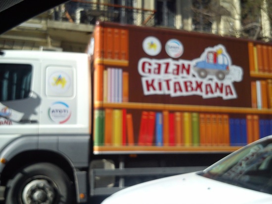 Внизу два снимка сделал я из машины. Это передвижной автофургон, библиотека на колесах, стояла рядом с 23-й школой
