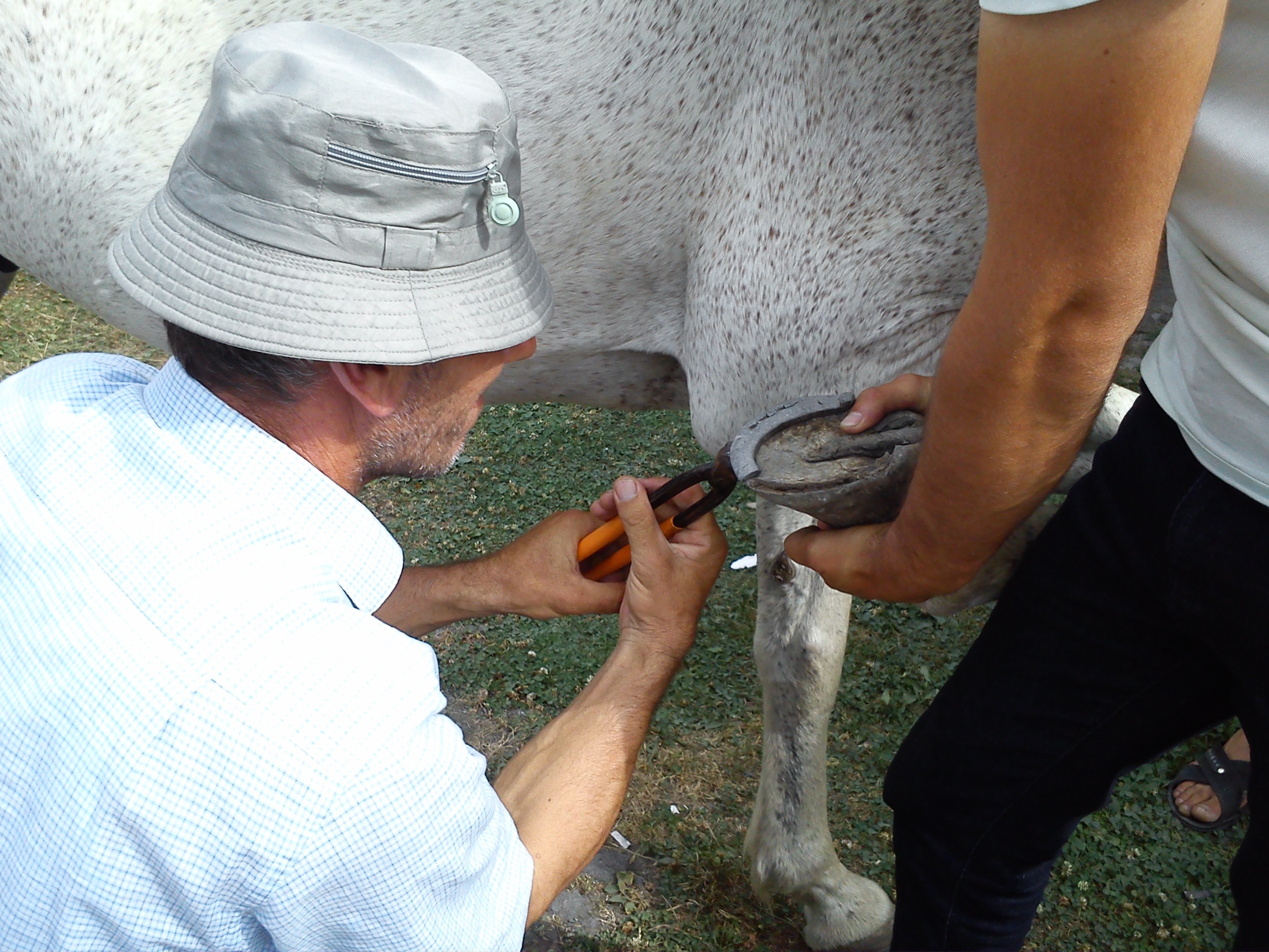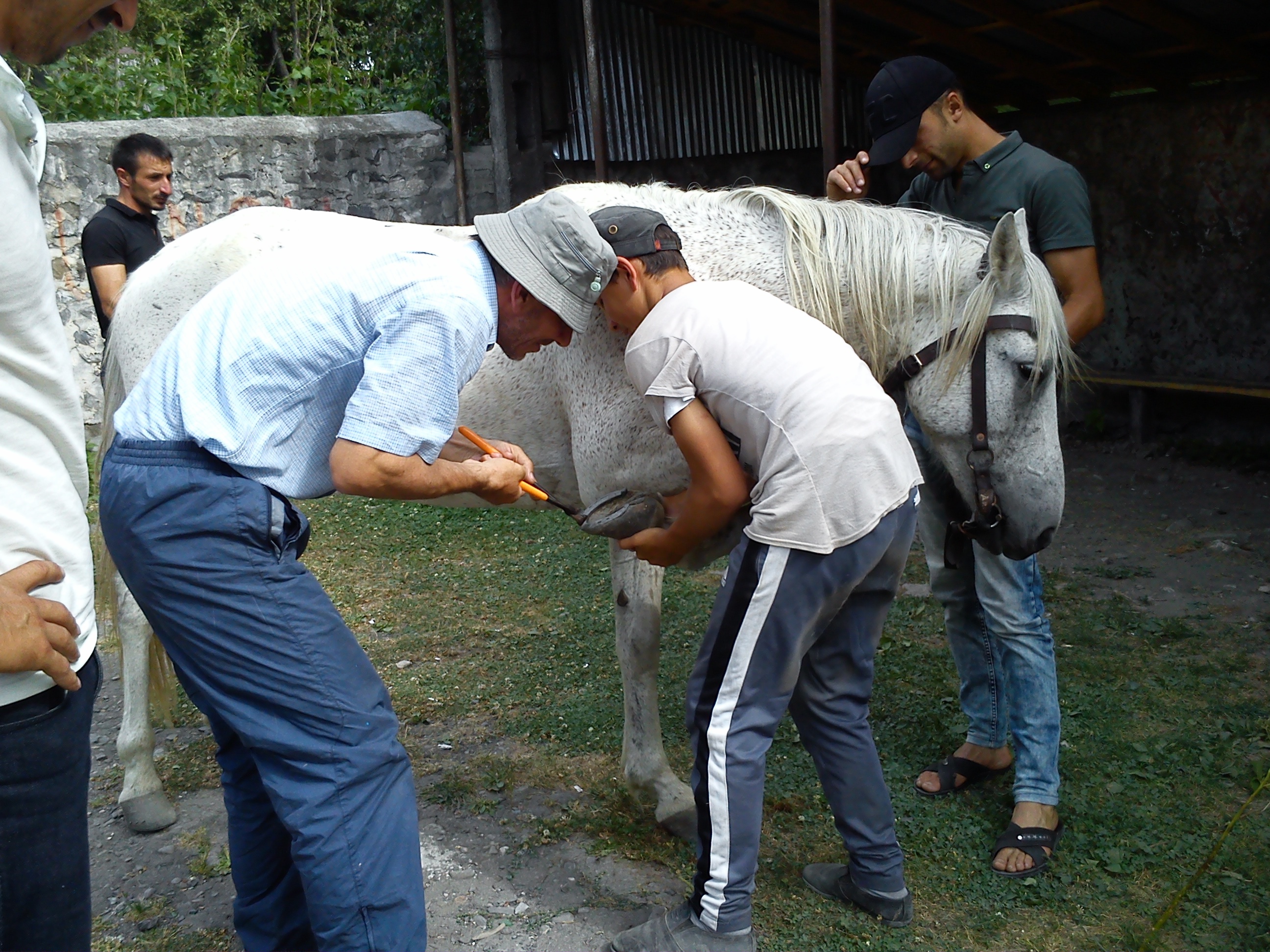 А сосед Намика - фермер Шахмардан сегодня подковывал белого коня. Технология налбанда (не путать с Налбандяном - просто у армян фамилии созданы из слов ненавистного им тюрского языка. Нал - подкова, налбанд - подковочник, подковывающий) за тысячу лет не изменилась. Те же подковы, такие же специальные гвозди, инструменты и способ работы.