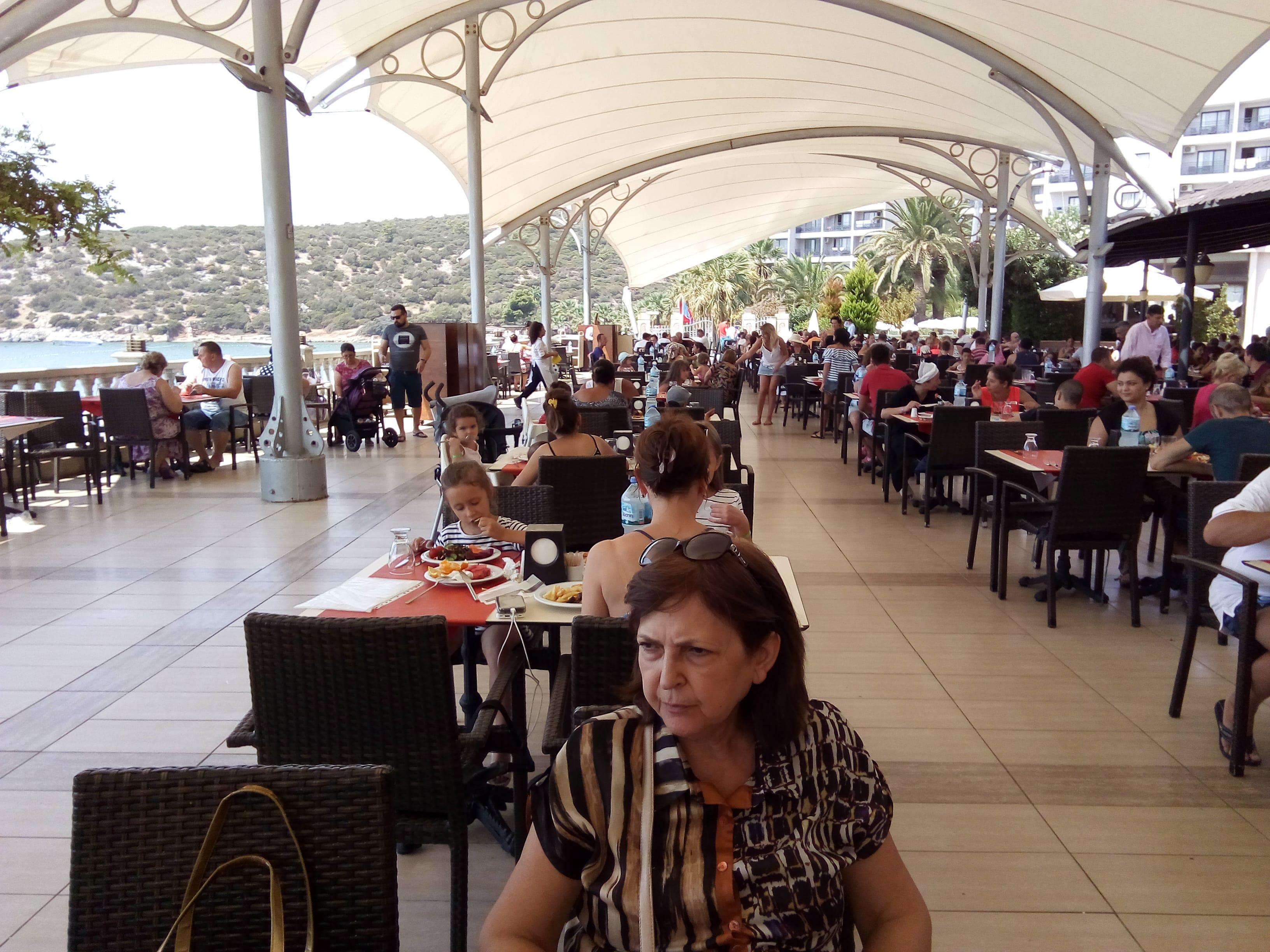 Конечно отдых в Турции не место для желающих похудеть. Ззнаменитые столы " Всё включено_ забитые едой причём некоторые блюда готовят на глазах у отдыхающих Это надо видеть как толпы туристов из разных стран бегают вокруг столов судорожно хватая и забивая тарелки всякой снедью пиво выдается бесплатно в неограниченном количестве также как и любые другие напитки Разумеется я тут заливаюсь домовым низко алкогольным пивом . Так же поступают русские но хочу отметить важное и знаменитых по российским телеканалам экземпляров кричащих Барнаул Тагил и прочие Сибирские Города Здесь этих людей нет да и быть не может потому что любой хулиган будет быстро схвачен частный полицией работающий в отеле передан государственной полиции дежуряшей за периметром . Теперь о вкусе еды . вкуса еды здесь нет . Пищи много можно забить живот при этом ничего не ощущаетшь. Удовольствие ноль. фрукты как говорится пластмассовые В конце скажу опять немного о технической части моих постов. поскольку я здесь работаю через смартфон а это очень неудобно то я наловчился наговаривать текст в Google который за меня пишет его в пост . потом я редактирую ошибки машины . но в любом случае текст получается неряшливой учтите пожалуйста мои трудности
