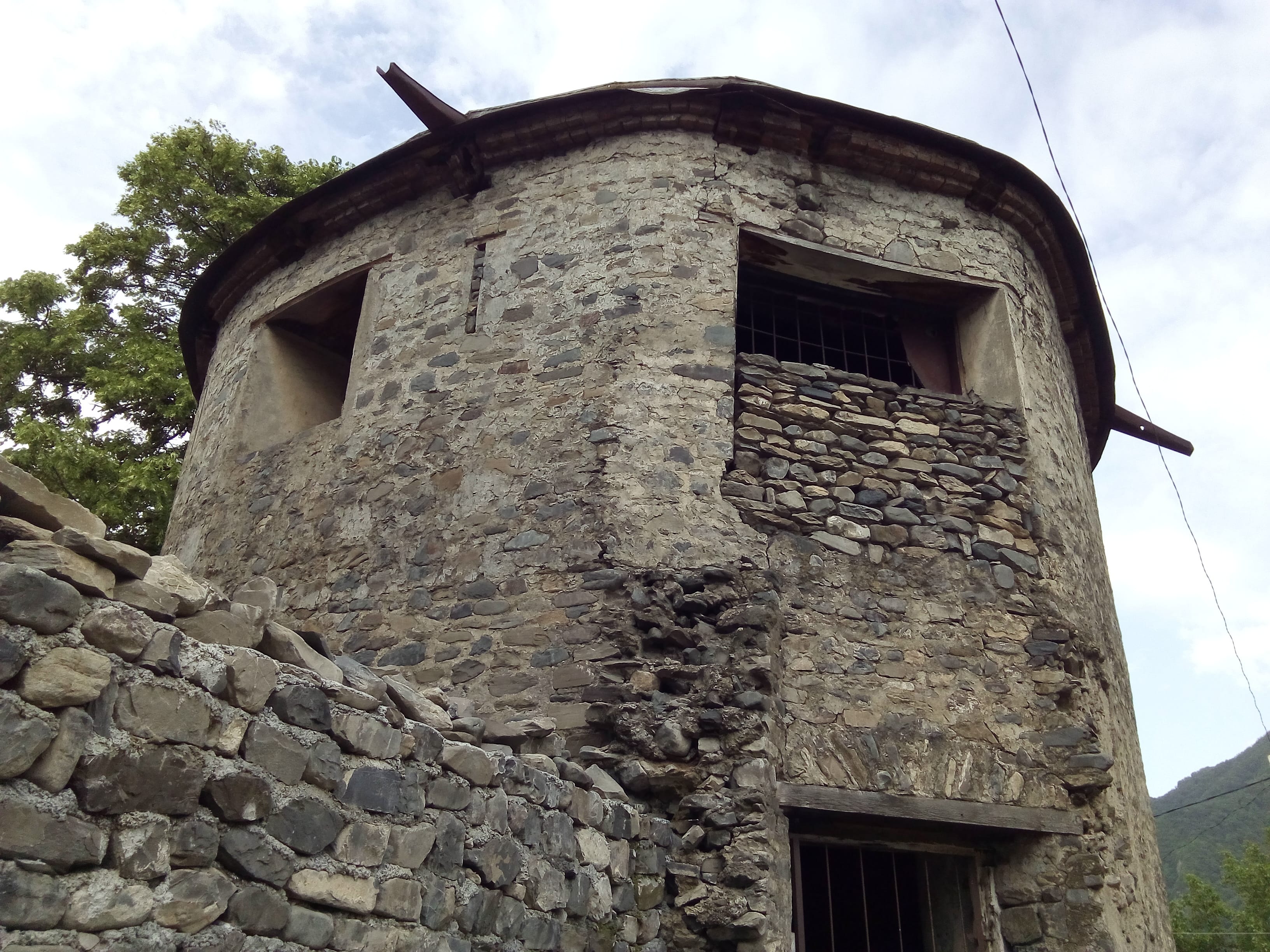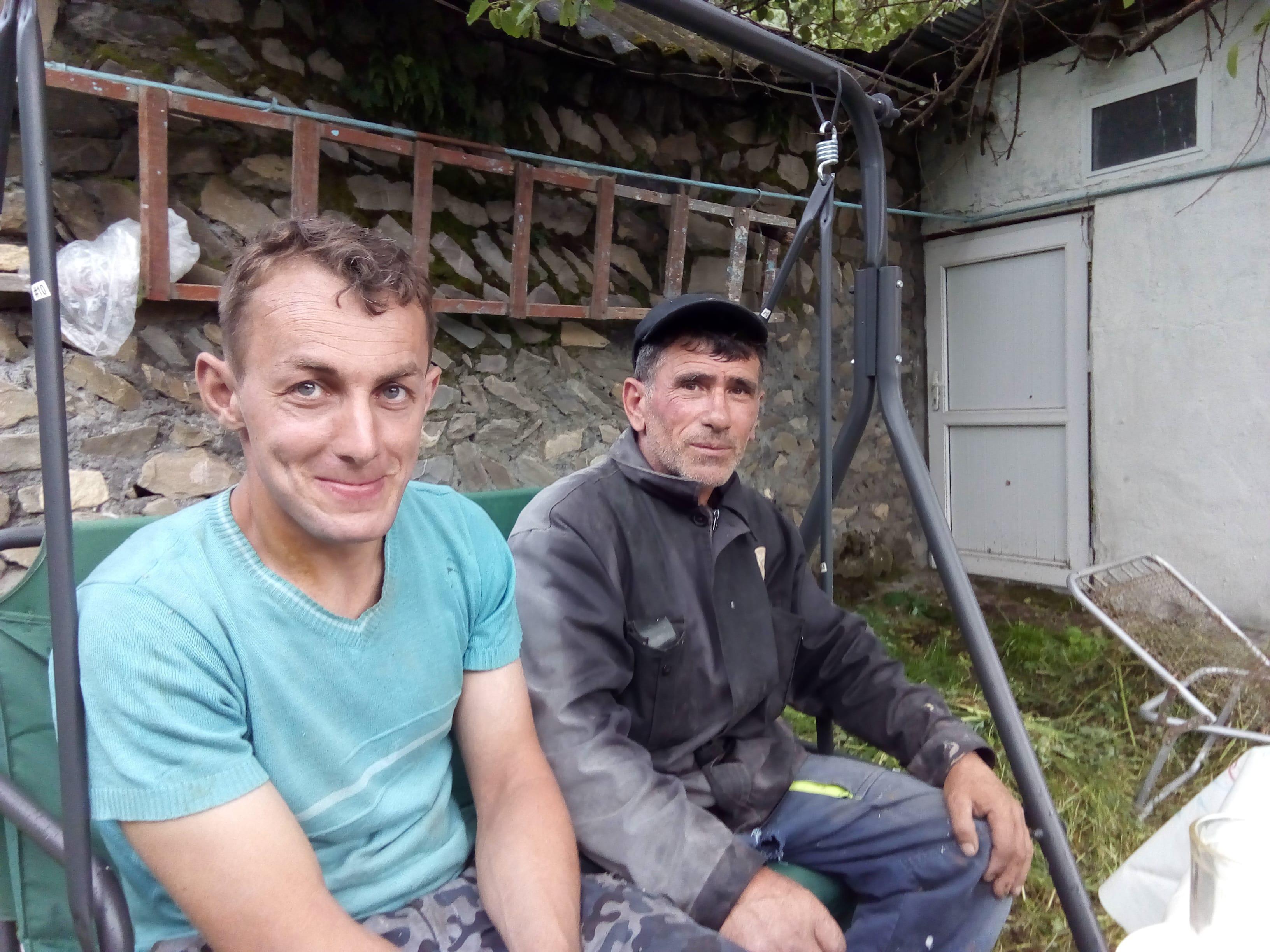 Вчера сосед Афер Мурудов, вы его видите сидящим справа, косил в моем дворе траву. Помог по-соседски, так как у меня косы нет своей. Он архитектор, реставрировал мечеть в Илису, местный краевед. После работы пили чай. Афер сообщил о том, что после статей в прессе посольство России направило в Илису спецов для рассмотрения предложения о ремонте сторожевой башни русской армии. Эта башня в Илису называется Буджар Гала. Афер нашел в ней дату строительства, выбитую на камне- 1851. В советское время башня использовалась в качестве колхозного амбара. Сейчас по стене видна широкая длинная трещина, часть башни наклонилась и может упасть.