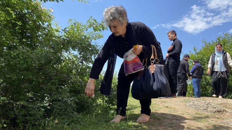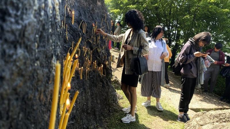 У подножия горы грузины и присоединившиеся к ним местные мусульмане раскладывают на траве скатерти с яствами и вином, и веселятся с песнями. Азербайджанцы тоже ставят свечки в церкви и на скалу, не мучаясь мыслями о неуместности мифа о петухе с исламской религией. Азербайджанцы в Гахе даже называют эту церковь "мусульманской". Другое название - Кился бурум (церковный поворот)