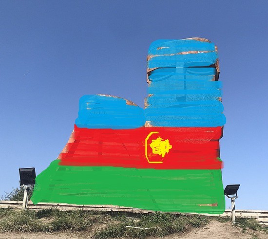 Когда писал, в голову пришла идея интересного компромисса. Если наша власть неожиданно так сильно уважает враждебные нам головы, тогда можно поступить так: раскрасить их в цвета флага Азербайджана, как раз на глаза попадут желтые полумесяц и наша 8-конечная звезда.