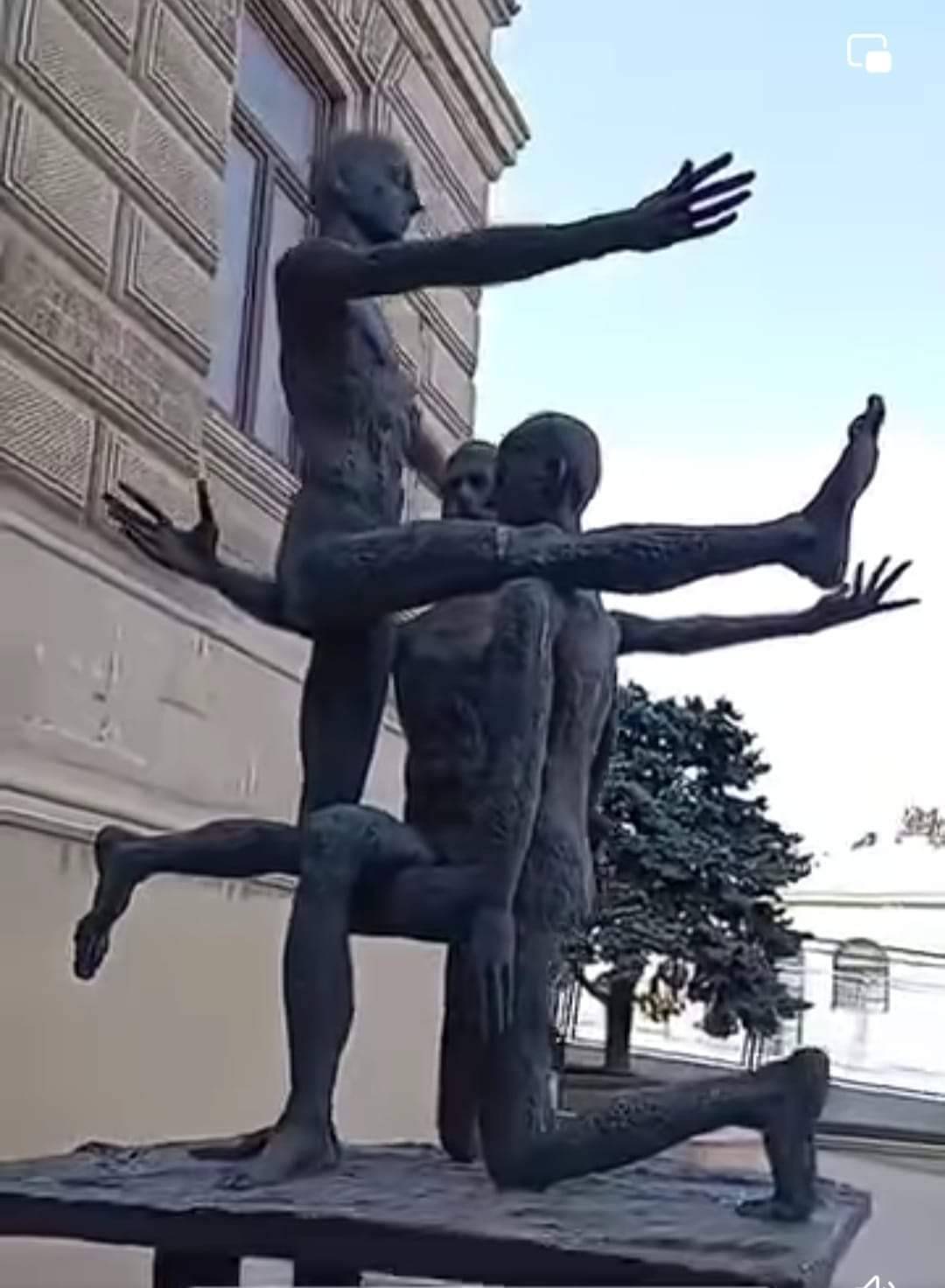 Сейчас только, готовя пост, поискал в и-те и нашел, что автору этой композиции Фуаду Салаеву на днях исполнилось 80 лет, он носит все значительные звания и имена в художественном мире, а композиция называется "Акробатическая конструкция" и показывает увлеченность советской молодежи 60-х годов такими гимнастическими упражнениями.